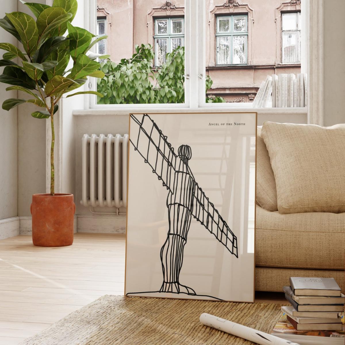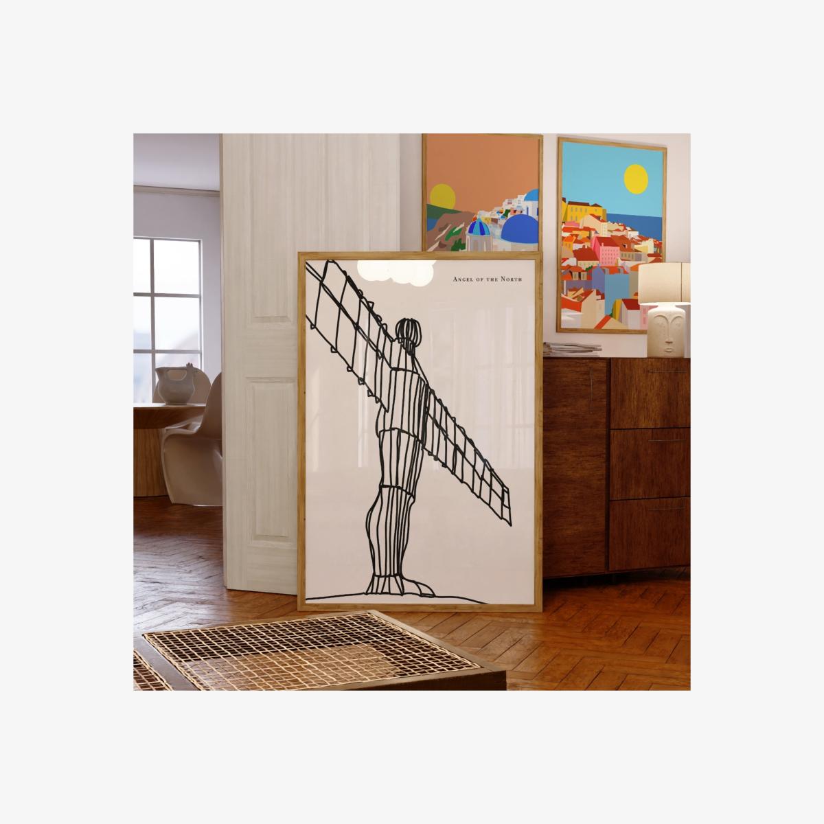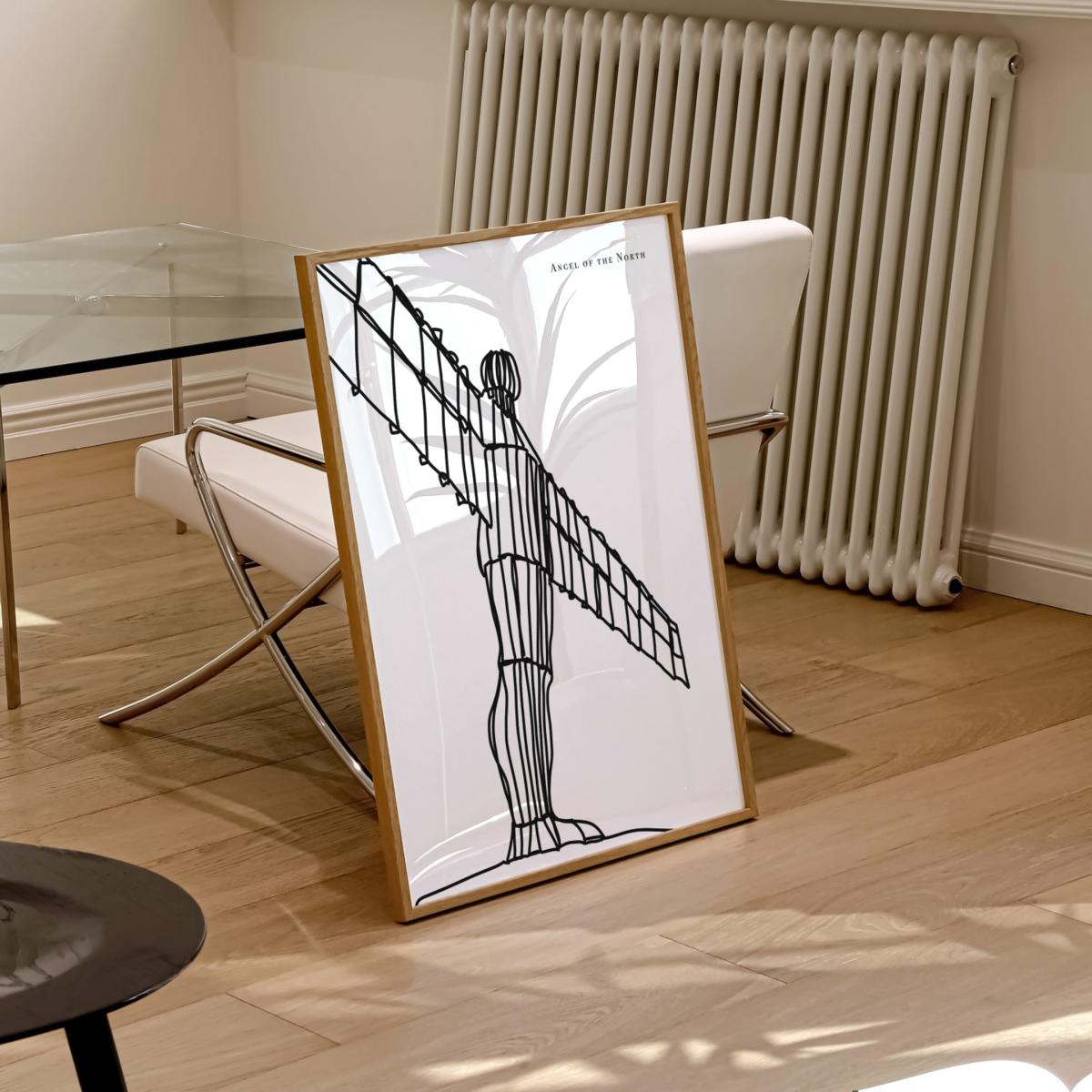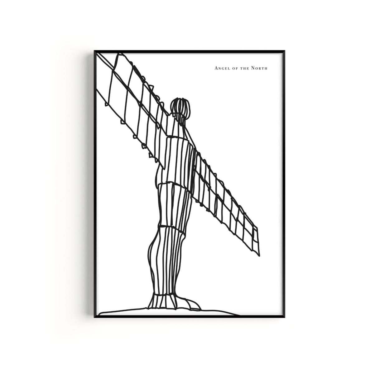 Angel Of The North Art Print - A2 The perfect gift for someone with a connection to Newcastle! Drawn in a black and white contemporary line drawing style. Prints are digitally designed by myself and printed to order. Smooth fine art 230 gsm matte card. Printed with vivid colour and detail. Sold without a frame.