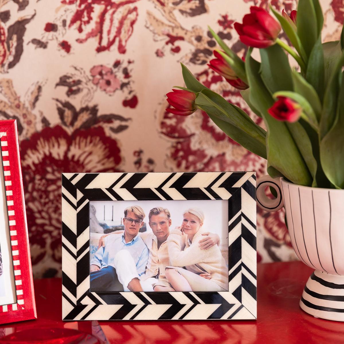This small black and white striped frame is a versatile piece that adds a modern, graphic touch to any interior. I love how it combines bold pattern with simplicity, making it suitable for contemporary spaces or even adding a punch to more traditional settings. It works well on shelving or side tables, especially when mixed with other monochrome accessories or natural elements like green plants or textured textiles. For practical styling, consider pairing it with colourful flowers or layered with other frames of varying sizes to create an eye-catching vignette. Its size makes it ideal for personal photos or smaller artwork, and the striking pattern ensures it remains a visual focal point without overwhelming the space.