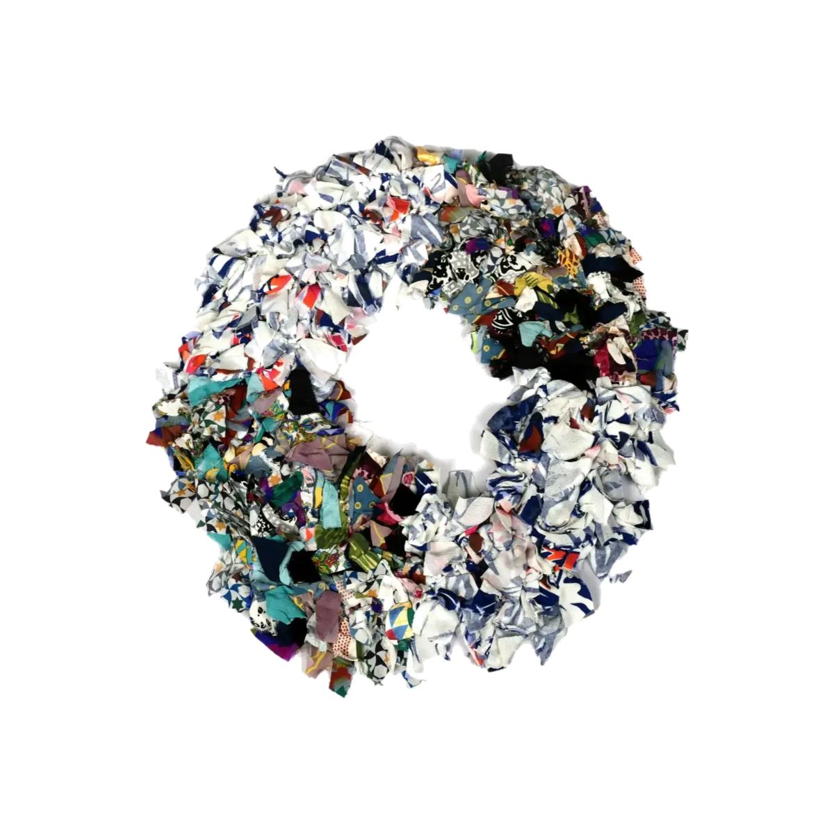 This gorgeous, limited edition wreath is the perfect addition to your Christmas decoration that is good for you and for the planet!!Each piece has been handcrafted sustainably, out of designer offcuts. With beautiful patterns and colors, each piece has a unique story to tell. (Product color may slightly vary due to photographic lighting sources or your monitor settings)