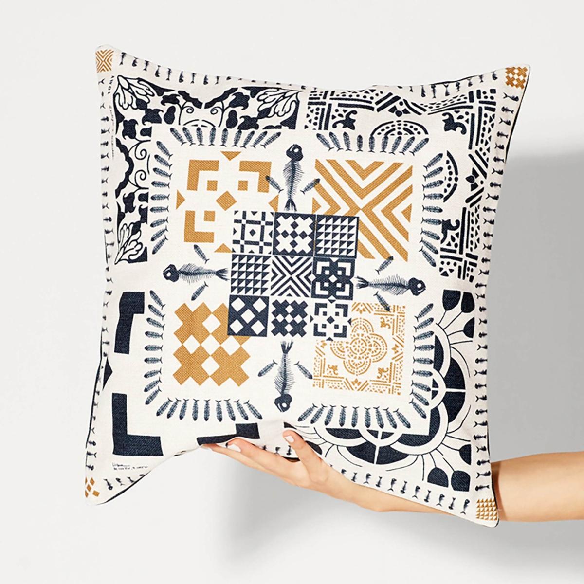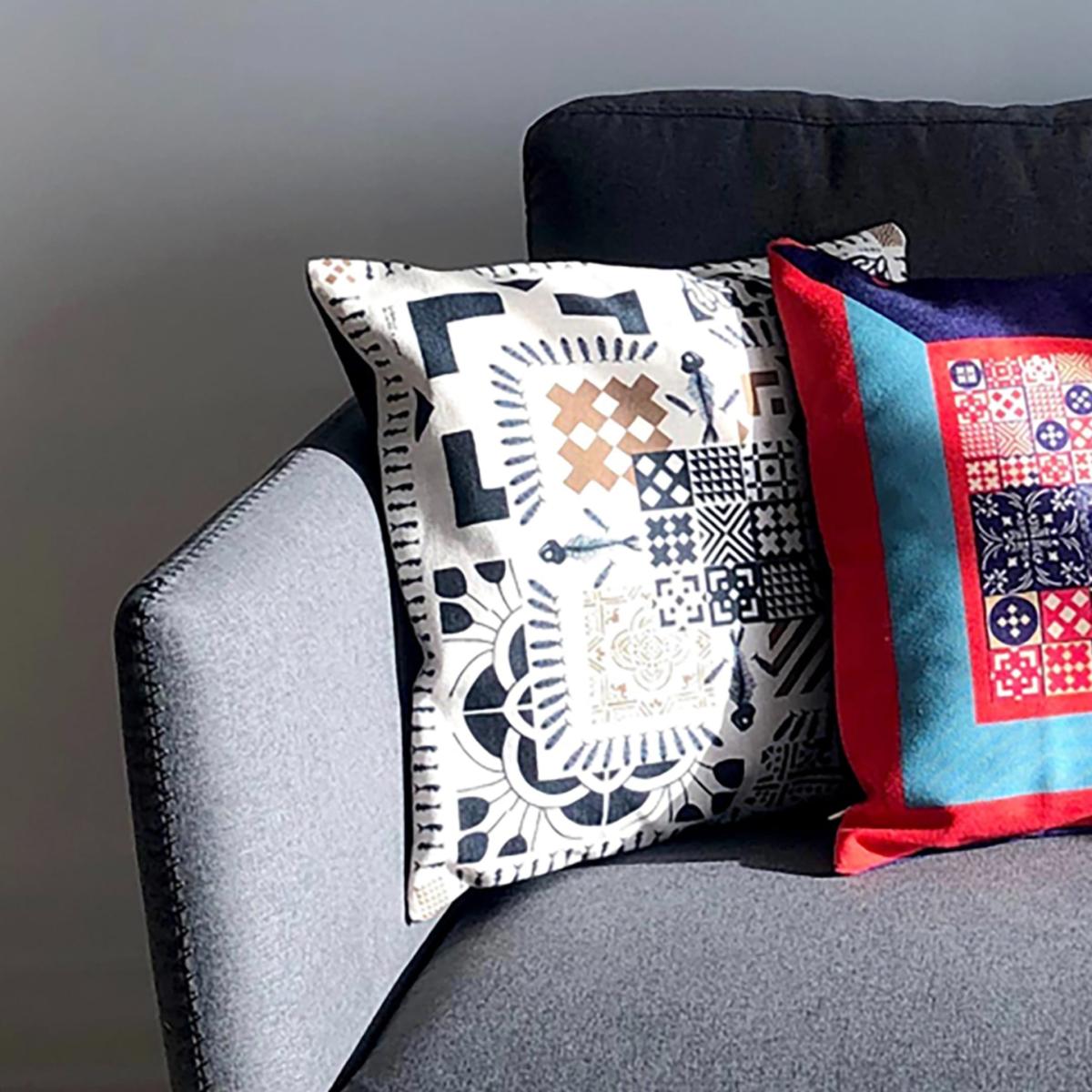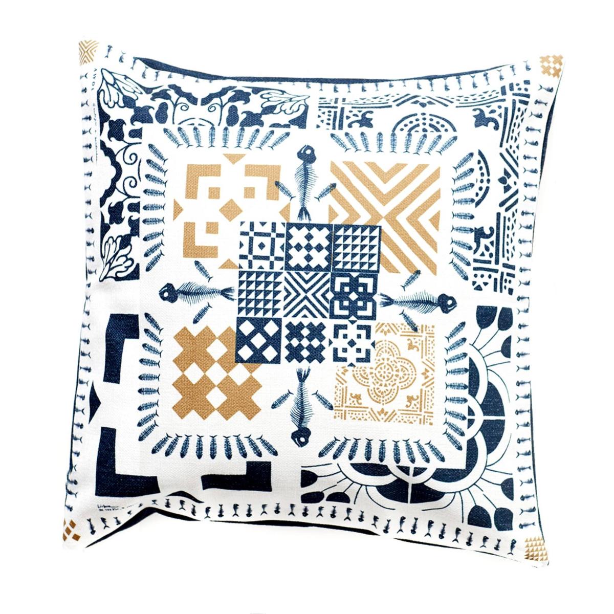 This black and white illustrated throw cushion design was inspired by the beautiful city of Lisbon: its stunning graphic sidewalks, colourful buildings, azulejo tilework, fresh eclectic streets, and yummy fresh sardine dishes. The merging of heritage and tradition with a modern creative scene that’s full of surprises around every corner. This bold, graphic throw pillow adds a unique black and white modern decor accent to any home, office space, restaurant or retail space. It’s handcrafted with the highest quality thick cotton linen with an inline zipper, making it easy to wash. The Portugal cushion collection adds a bold, fun and unique decor accent to any living or working space.