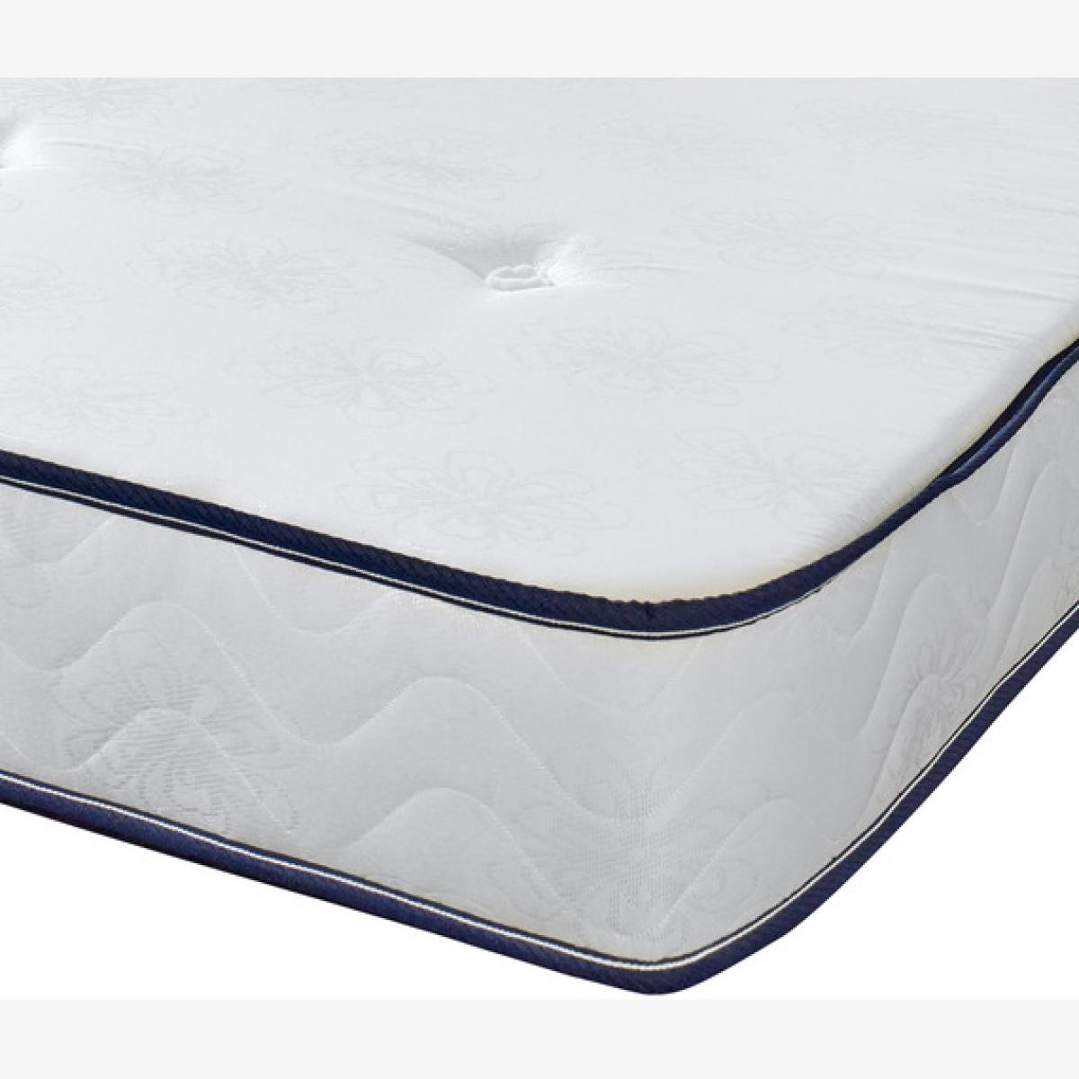 Great for bunk beds, cabin beds, day beds etc. Please check the size of your base before ordering as these will be difficult for you to return. This is our Black and White Hand Tufted Budget mattress. It has a double insulated open coil Bonnell spring unit with an additional layer of comfort padding on both sides. Covered in White Damask material with a contrasting dark taped edge and a hand-tufted finish, it is a medium soft feel mattress that sleeps both sides and you should turn and rotate your mattress regularly to get the best from it. These are UK-made mattresses, produced in our West Yorkshire factory and are fully compliant with all relevant UK fire safety regulations for domestic use. We compress, vacuum pack and roll these mattresses so that they can be delivered quickly and cheaply to your door. You will need to allow a few hours after opening for your mattress to regain its shape and size.