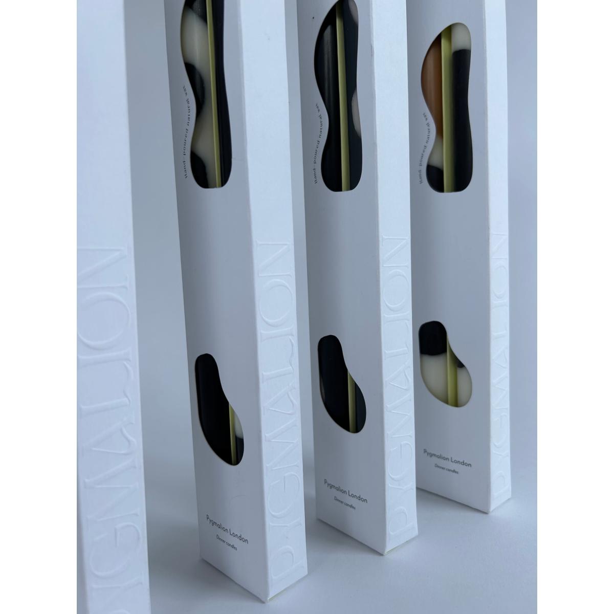 If art and ambience had a baby. Dinner candles like you've never seen before - hand-poured using 100% natural wax, natural dyes and pure cotton wicks. Pygmalions are designed for the joy of hosting: good food, great company and memorable ambience. The packaging was dreamed up using this same ethos - bringing luxury, design, sustainability and fun together to create the perfect gift. The candles are 29cm allowing for a leisurely 10+ hour burn time. Mali candles are hand-poured into unique colour blocks of off-white and dark charcoal wax and come packaged as a pair.