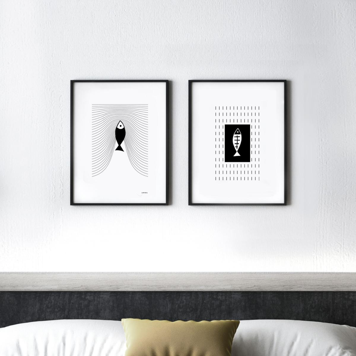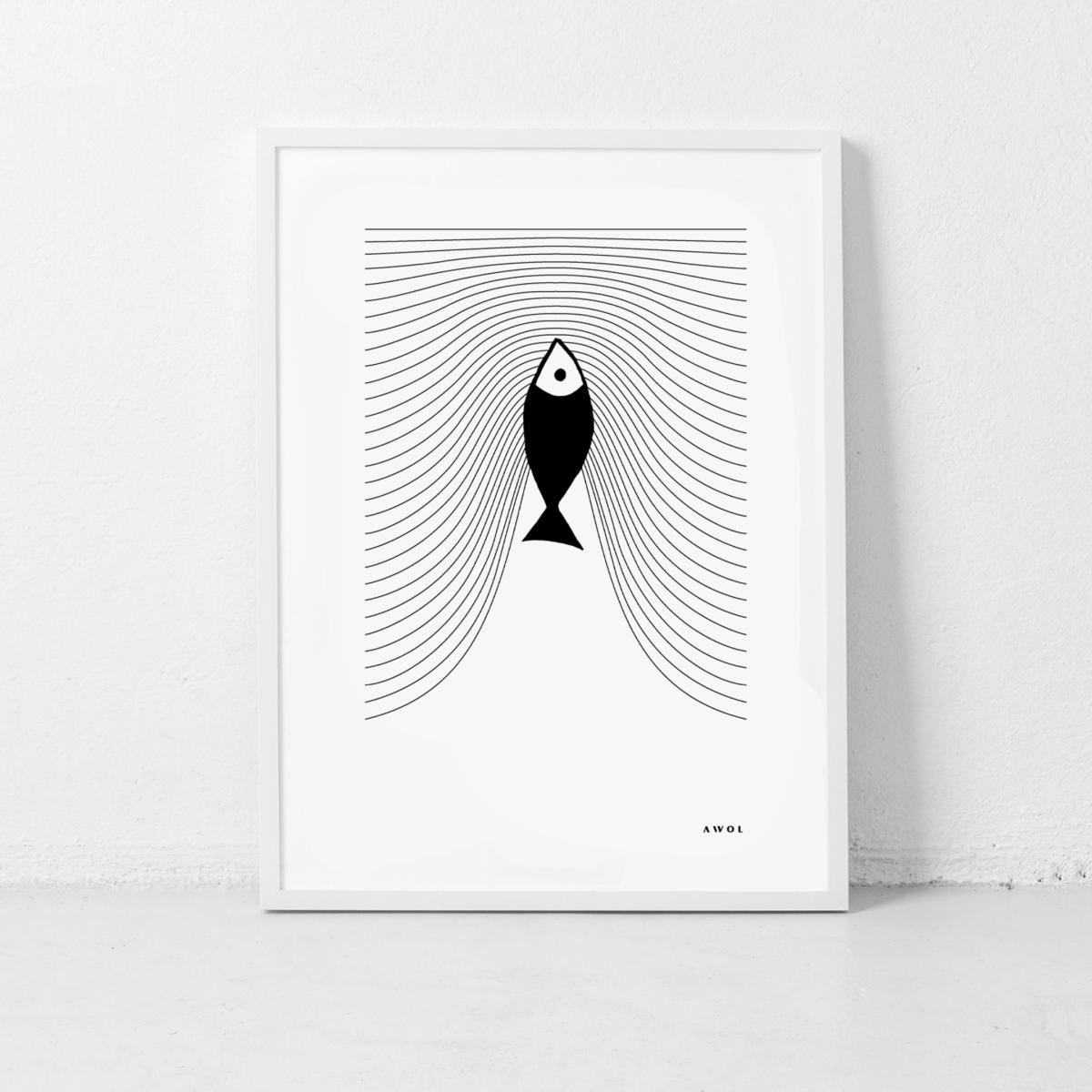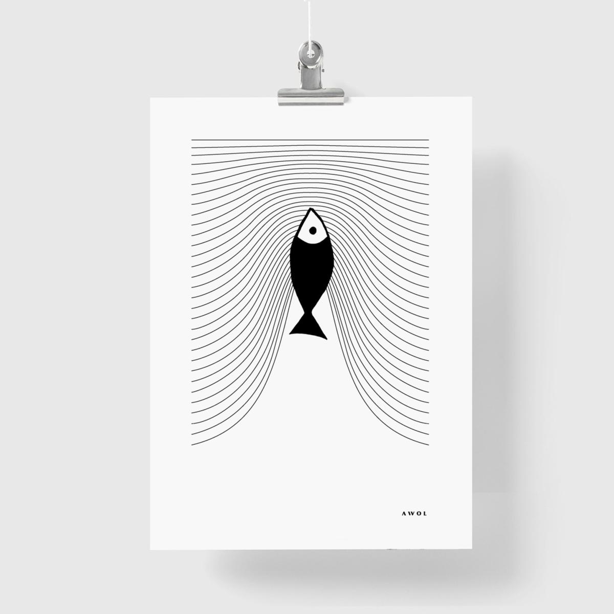 The Plenty Of Fish In The Sea art print is a minimalist, black and white fish illustration featuring an abstract sea pattern made of lines, and a Scandinavian fish swimming upstream. The artist has long been fascinated by the simple, geometric shapes of fish, encountered in real life or in art, and the rich symbolism across cultures: prosperity, curiosity, freedom, fluidity and strength, courage, patience, and success, among many others. This fun and playful monochromatic fish art print is part of an abstract series of three graphic black and white fish triptych, creating a fun and modern nautical decor for any room. Also a great gift for your single friends looking to catch the perfect fish :)