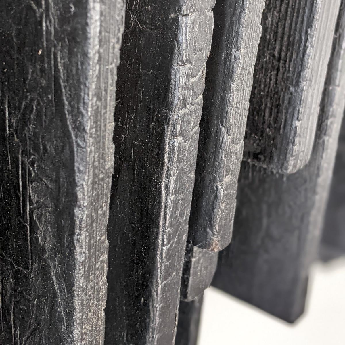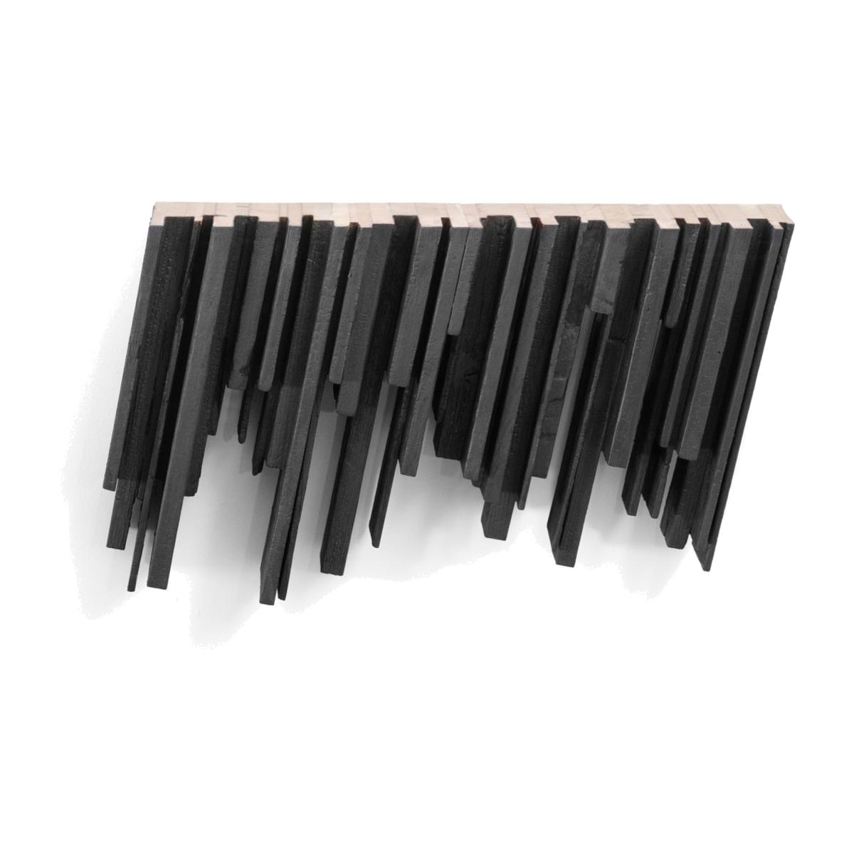 With the dynamic inverted Skyline this shelf will instantly bring the texture and depth your room’s been missing. Recycled wood pieces meld together to elevate your space and give new purpose to discarded materials. Maximum weight: 20 pounds Finish options: Torched black & natural = torched with black alligator texture & natural wood with tung oil Torched black & white = torched with black alligator texture & stained white color Creating second chances. For people and planet. We create thoughtfully designed objects that reincarnate construction waste and empower formerly incarcerated people with a fresh start. Designed and handmade with TLC in San Francisco.
