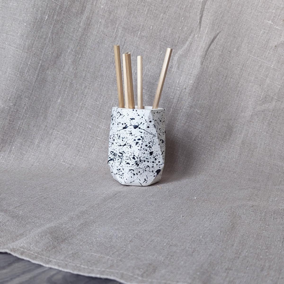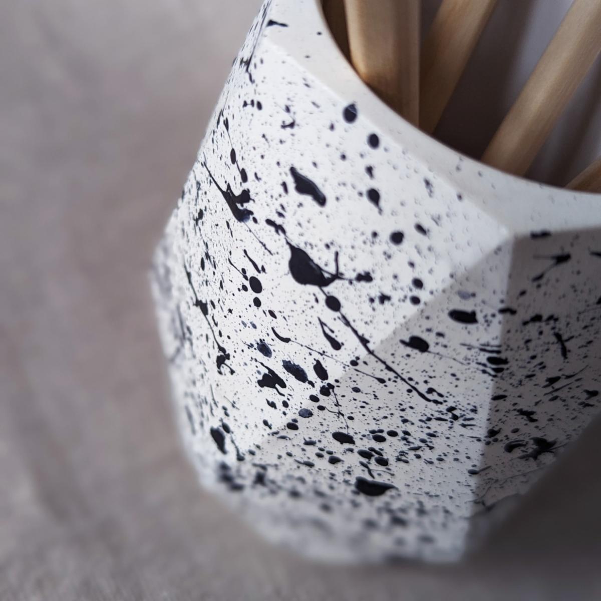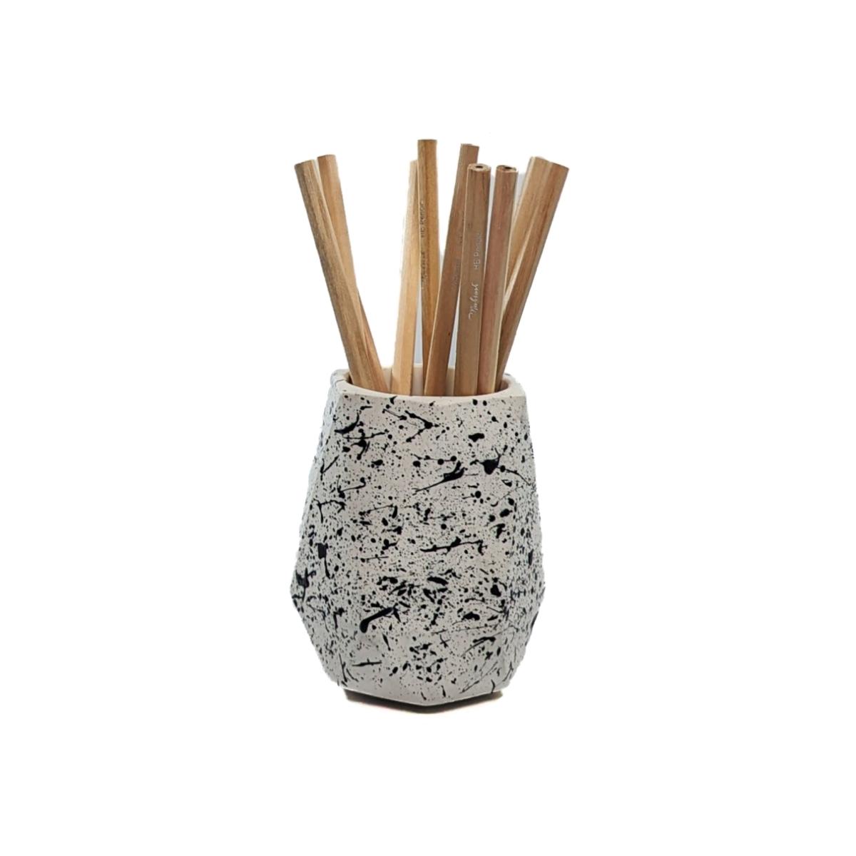Black / White Splatter Concrete Geometric Pen Holder One Size Ruby Melo