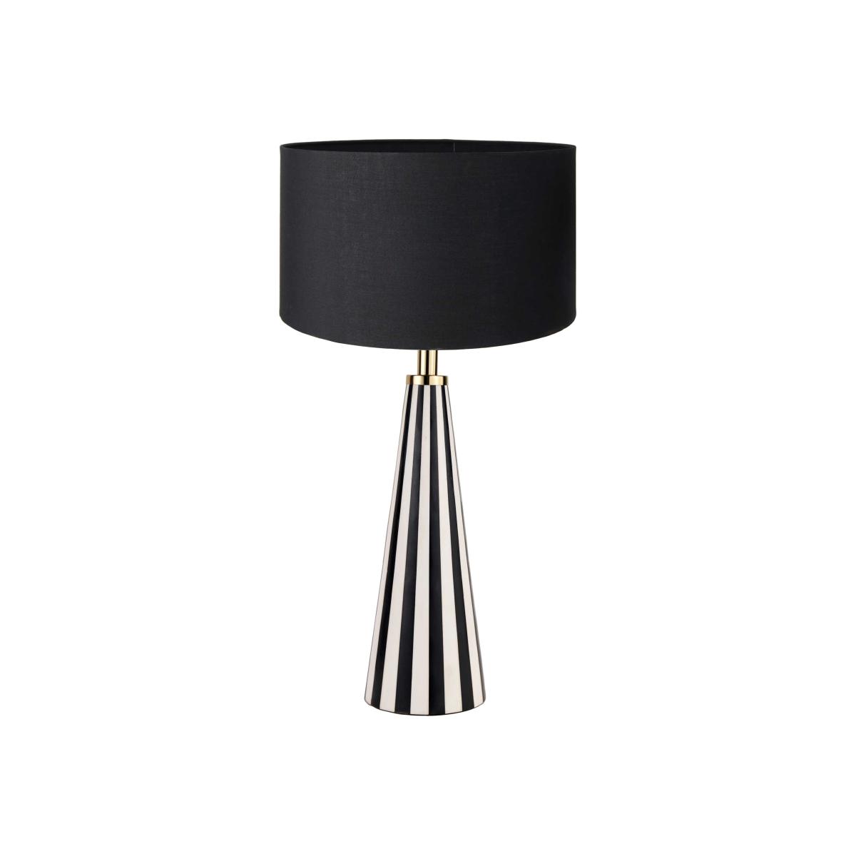 The Black and White Striped Table Lamp is a striking table lamp featuring a bold conical shaped resin base in a stylish monochrome aesthetic perfected with a sleek black lampshade. Place singularly on a side table in the living room or perhaps two, one at either end of a sideboard or on bedside tables to create a striking focal point in your space.