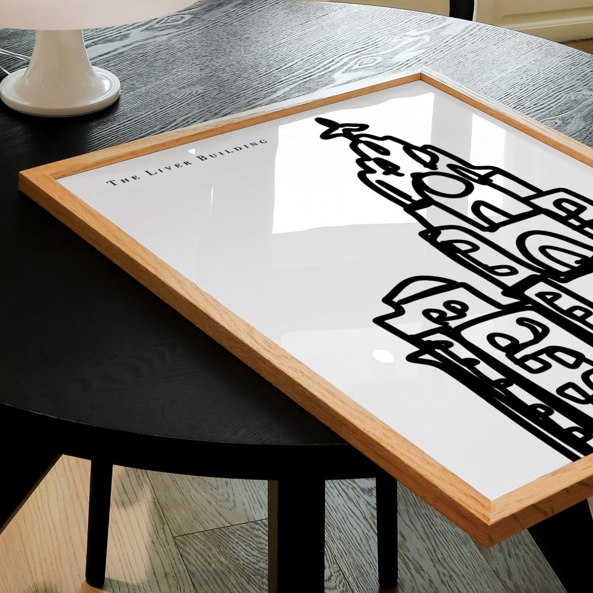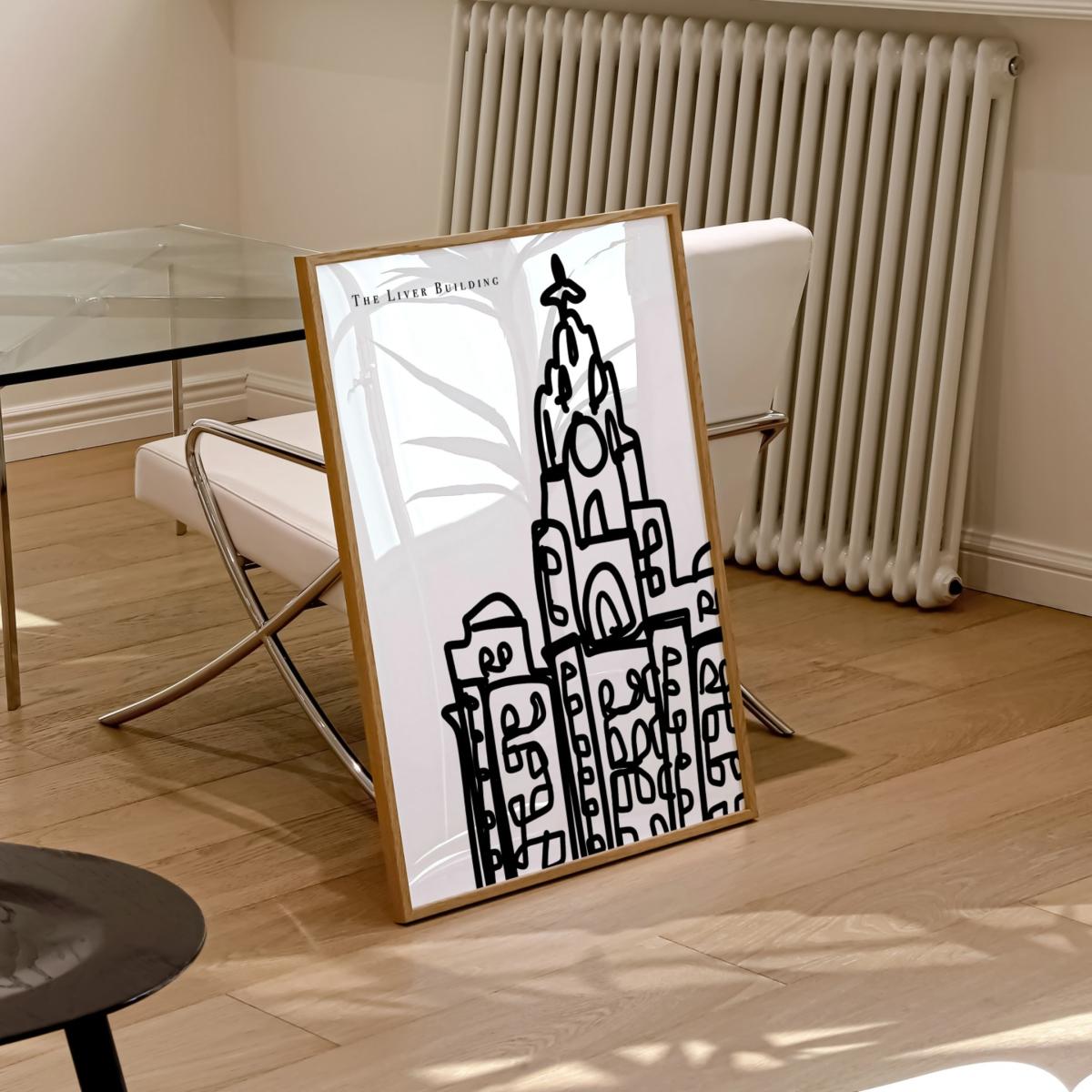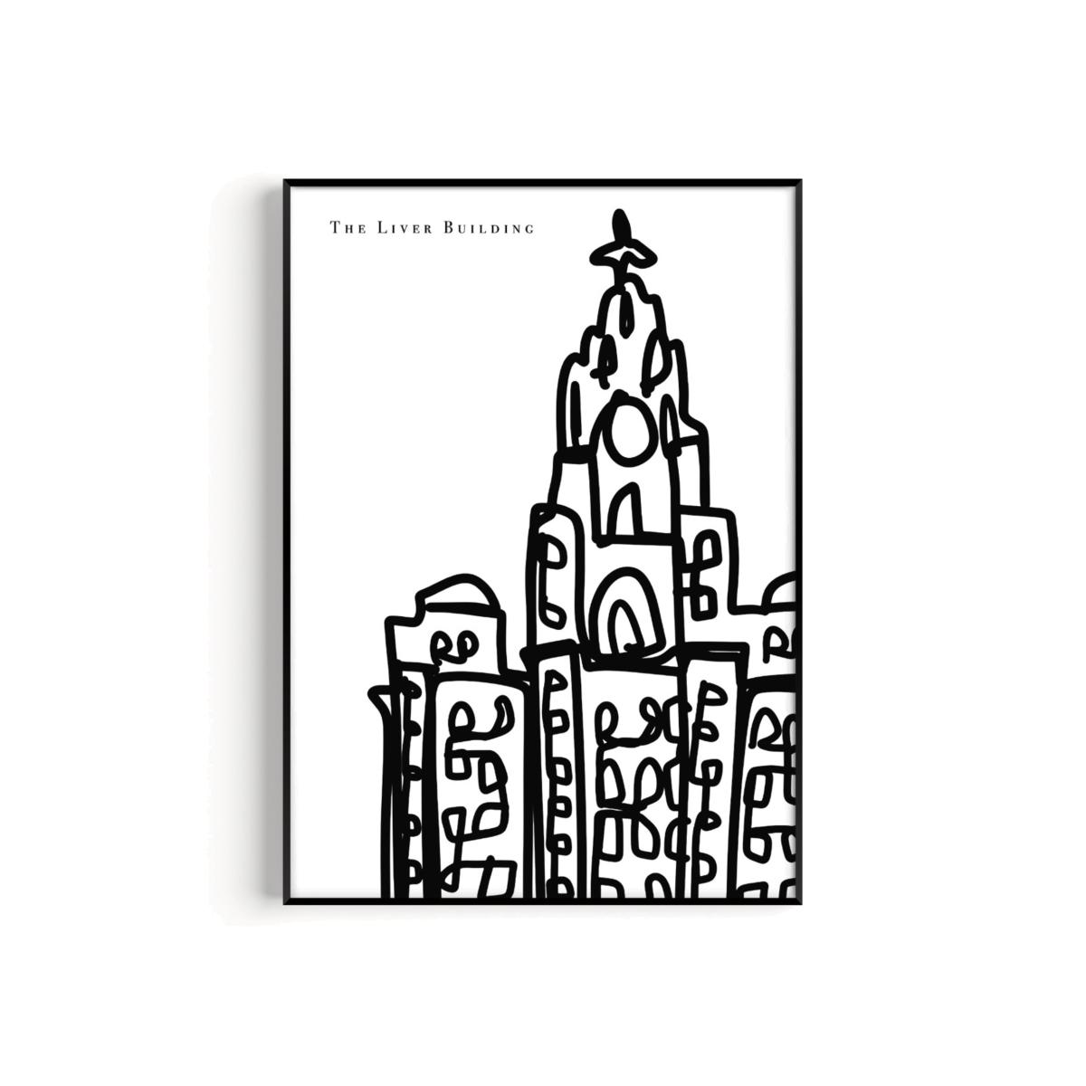 The Liver Building Art Print - A3 The perfect gift for someone with a connection to Liverpool! Drawn in a black and white contemporary line drawing style. Prints are digitally designed by myself and printed to order. Smooth fine art 230 gsm matte card. Printed with vivid colour and detail. Sold without a frame.
