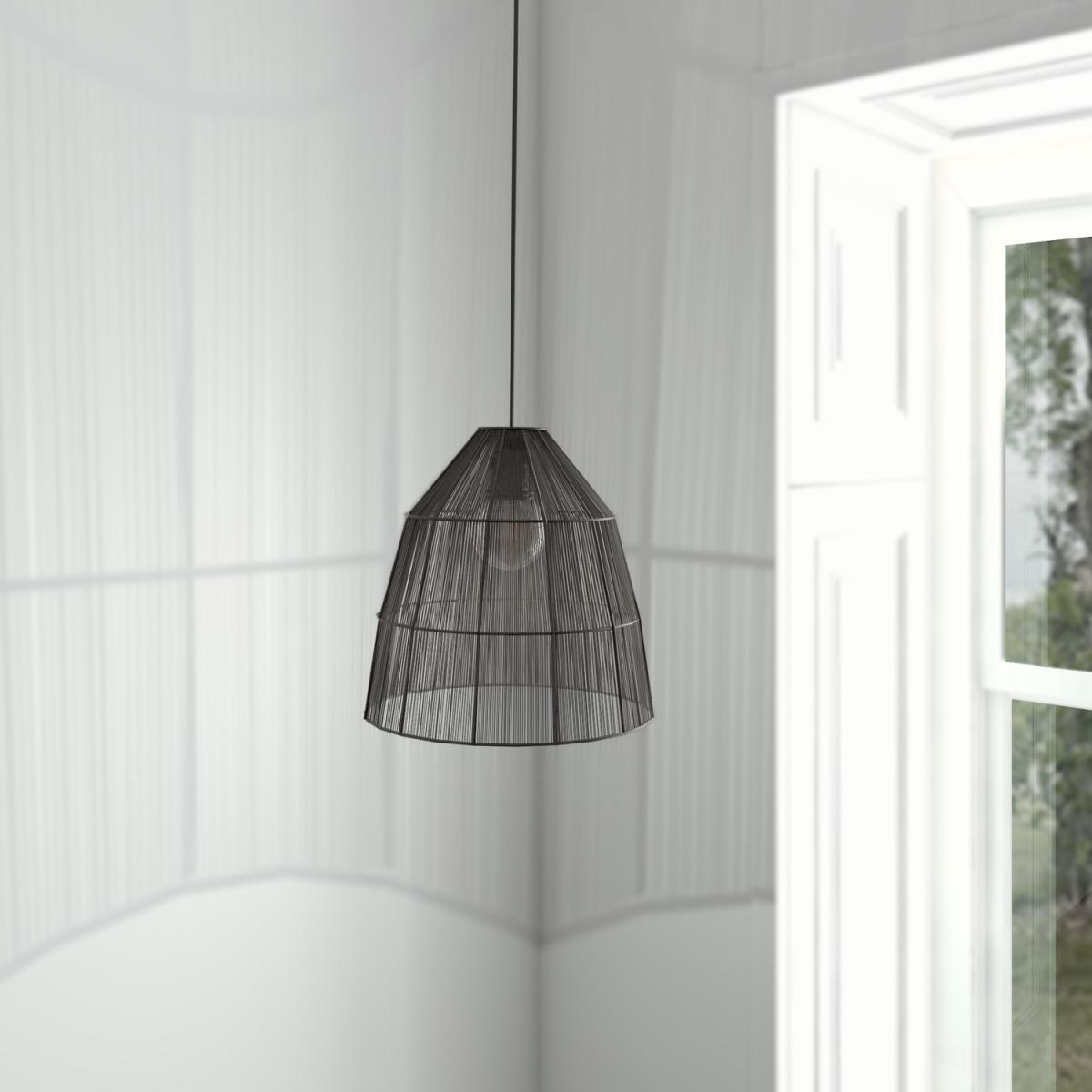 Features we love Woven metal pendant light with bronze finish. Hang alone or in a series above a dining table. Intricately woven wire distributes light perfectlyE2. 7 and LED bulb compatible can be dimmed. Shade dimensions W34 x D34 x H32cm Need to know. Overall dimensions. W34 x D34 x H32 cm (without cable) Shade dimensions. W34 x D34 x H32 cm Ceiling cup dimensions. W12 x D12 x H2.25 cm Overall drop. 130 cm Range. Williamsburgh Style. Modern Fixture design. Ceiling pendant Switch type. On-Off Number of lights. 1 Bulb type. E27 Maximum wattage. TBC Colour. Black bronze Finish. Painted Material. Iron LED compatible. Yes Dimmer compatible. Yes Bulb included. No Weight. 1.3kg Fixings supplied. Yes Assembly required. No Warranty. 1 year.