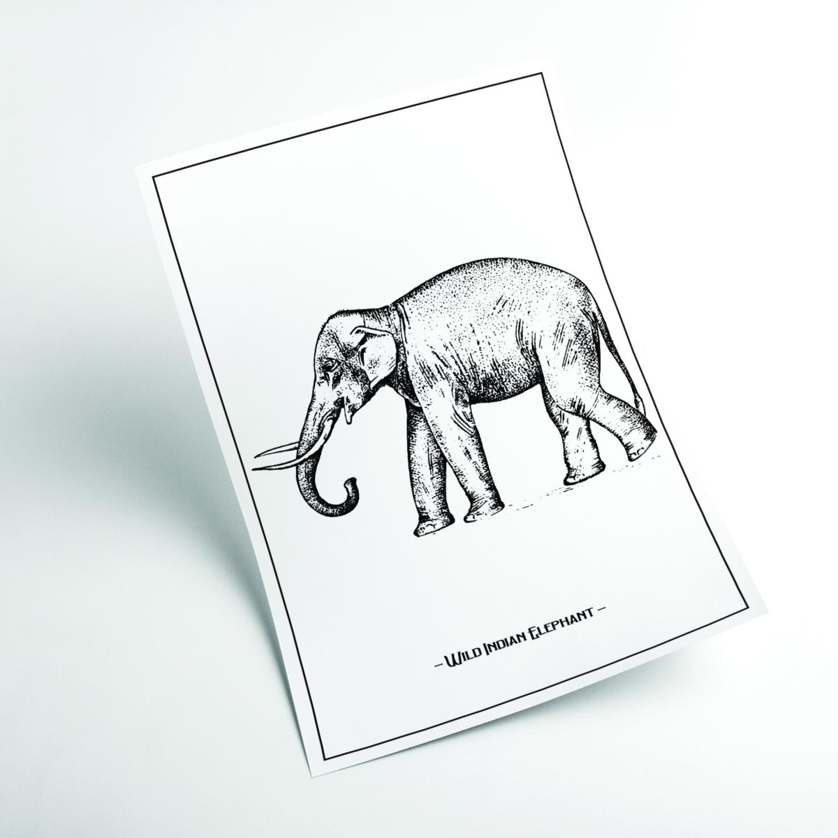 Black Wild Indian Elephant A2 420 X 594Mm Stanley Print House