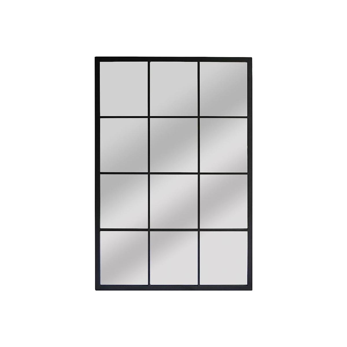 Black Window Style Durable Metal Frame Mounted Wall Mirror - Black