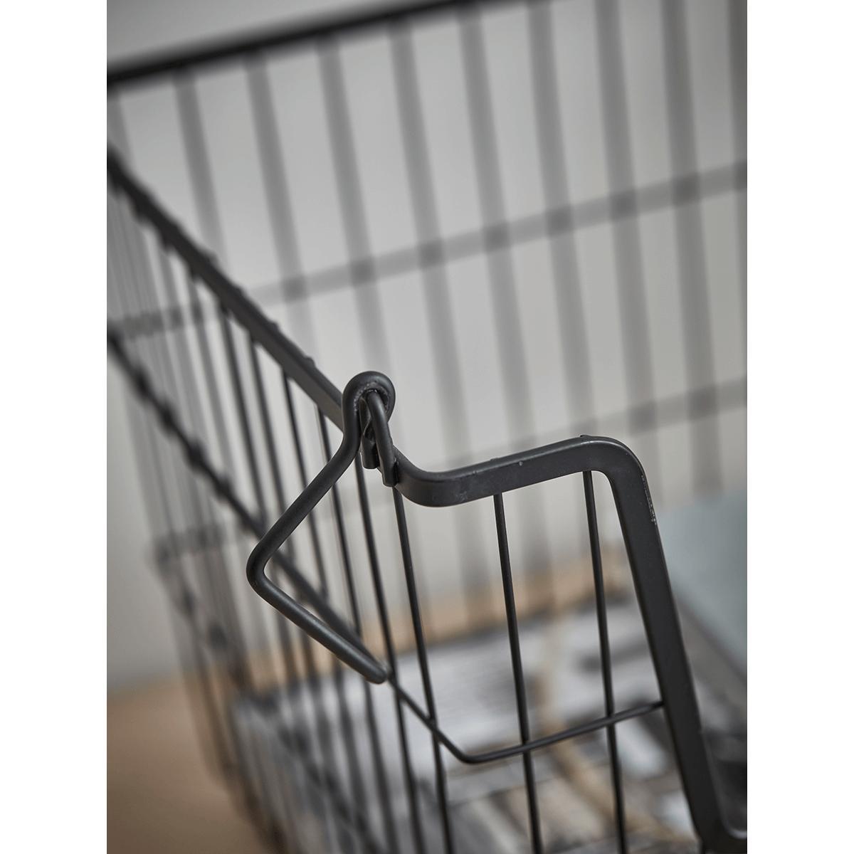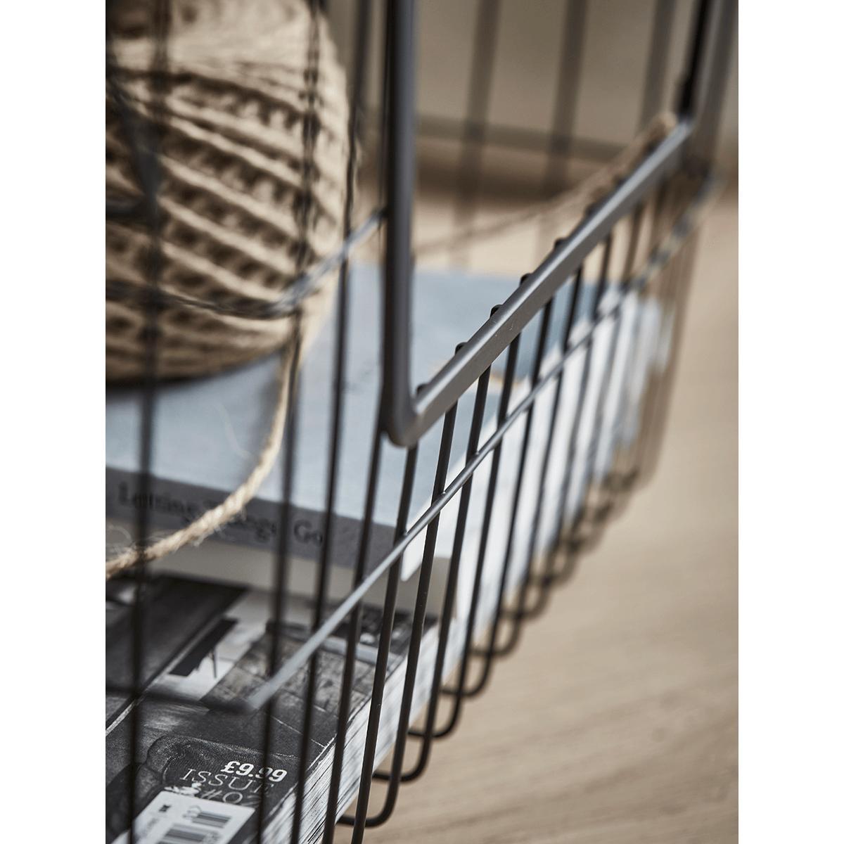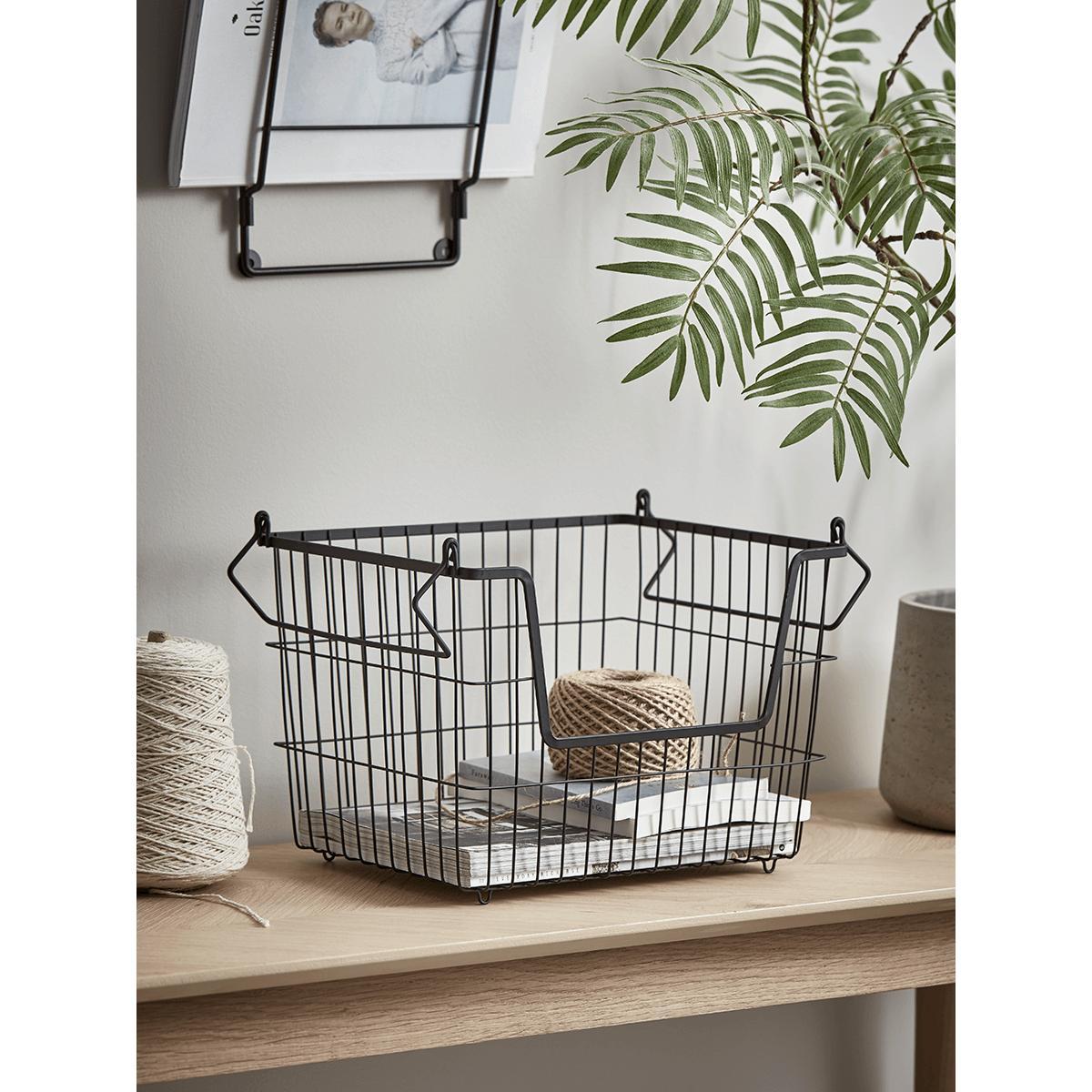 Stylish and versatile, our sophisticated black wire basket is perfect for keeping clutter at bay. Each basket comes with two handles, making it easily transportable from room to room or stack more than one by flipping the handles inwards. The wire mesh frame lends a touch of industrial style to your office or kitchen - perfect for storing your trusted magazines or cookbooks.