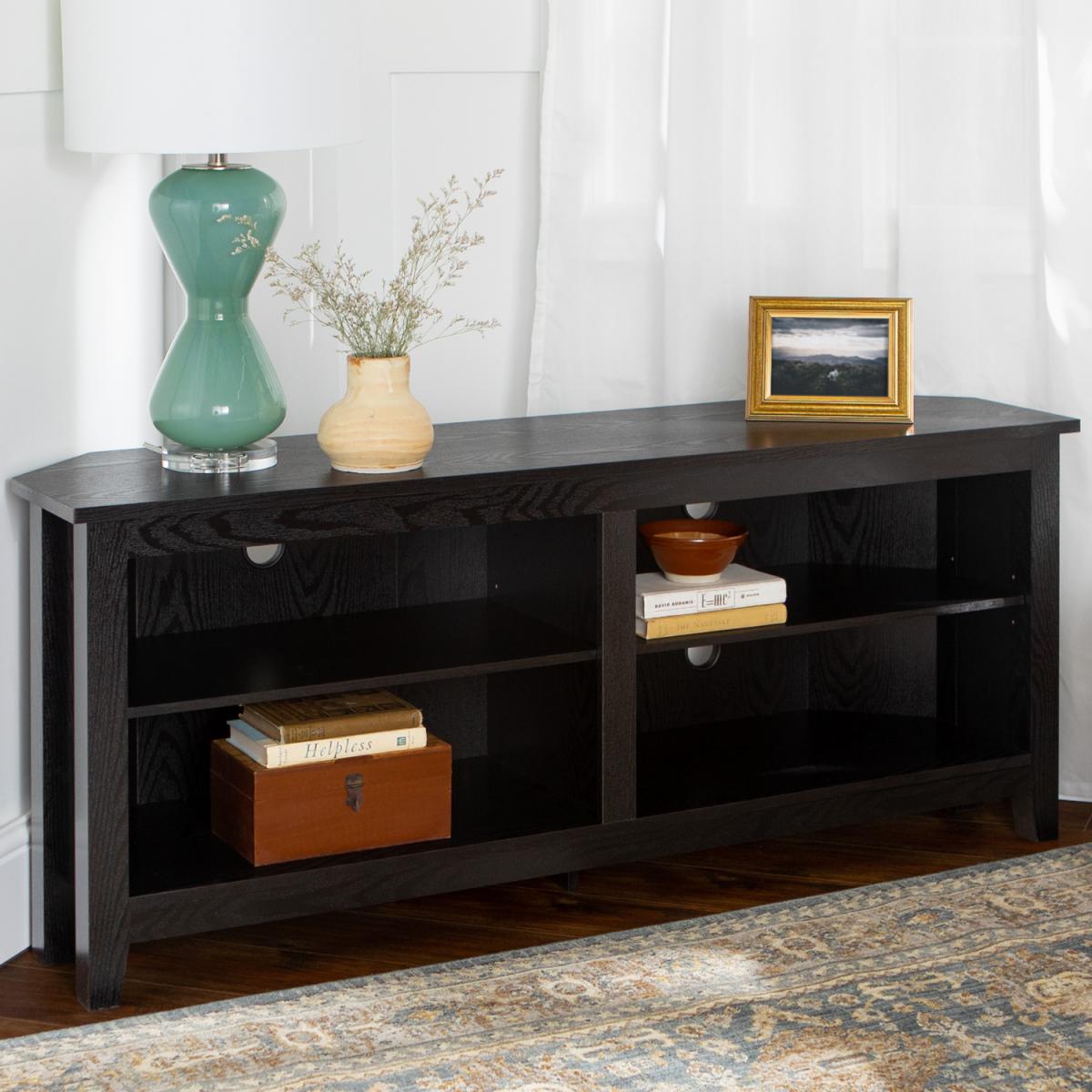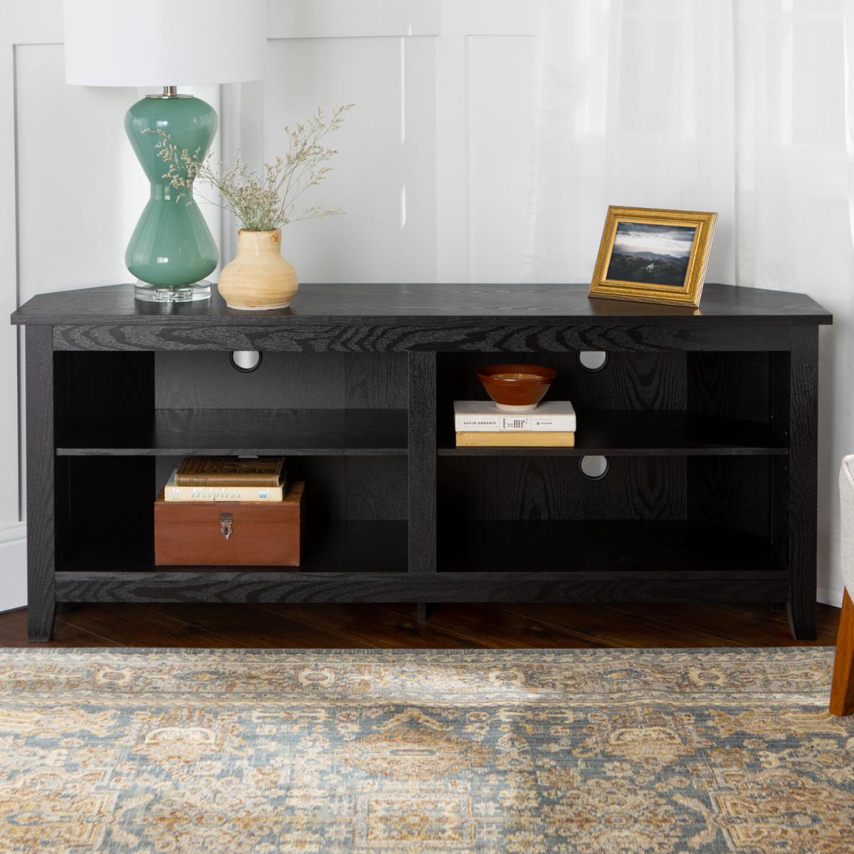 Black Wood Effect Corner TV Unit with 4 Open Shelves - Foster - TV's up to 60