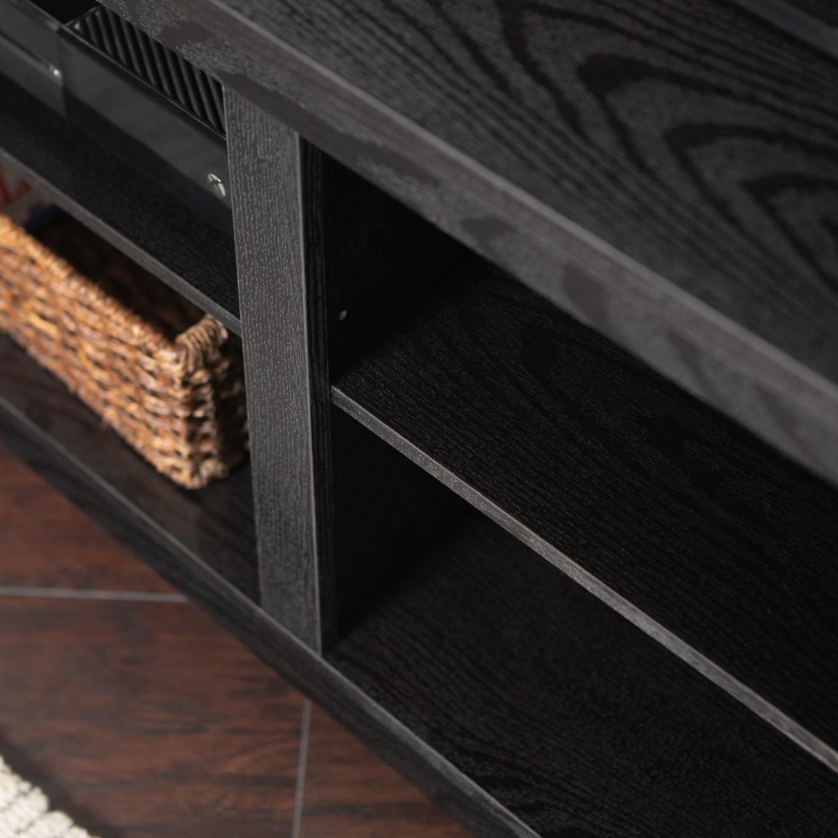 This black corner TV unit pairs beautifully with any décor style of a home. Position in any corner of your living room to hold anything from your home décor to your electronics, as this TV unit is meant to fit your storage needs, while also looking stylish. Made of durable, high-grade MDF, this transitional style TV unit can accommodate most flat-panel TVs up to 60 inches and includes a cable management system to keep your living room tidy.