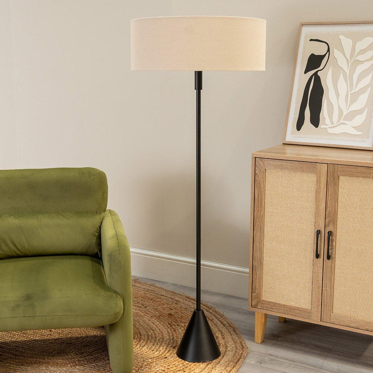 Meet the floor lamp with more personality than a stand-up comic! With its unique triangle design and rich black finish, it's sure to make a bold statement in any room. The squat linen shade adds a pop of colour and drama, creating a chic, stylish vibe. Whether you place it in your living room, bedroom, or office, this lamp brings modern flair and charm to your space. Ready to light up your life with style? It's waiting for you!