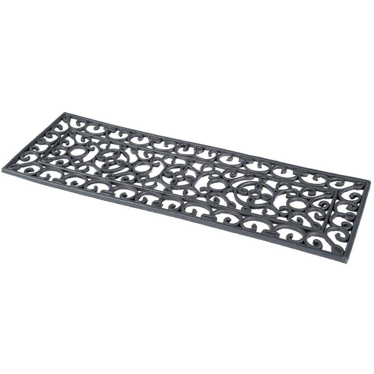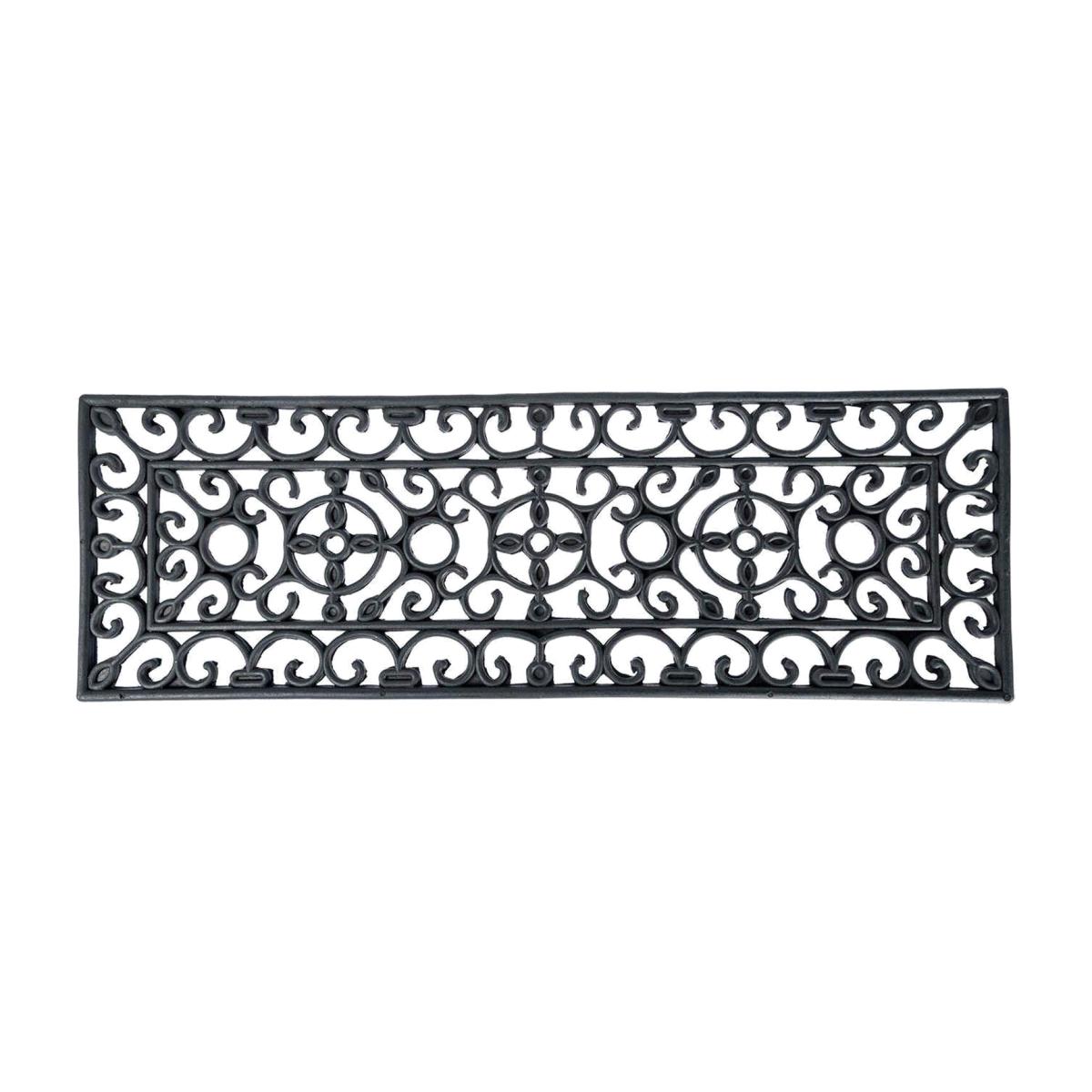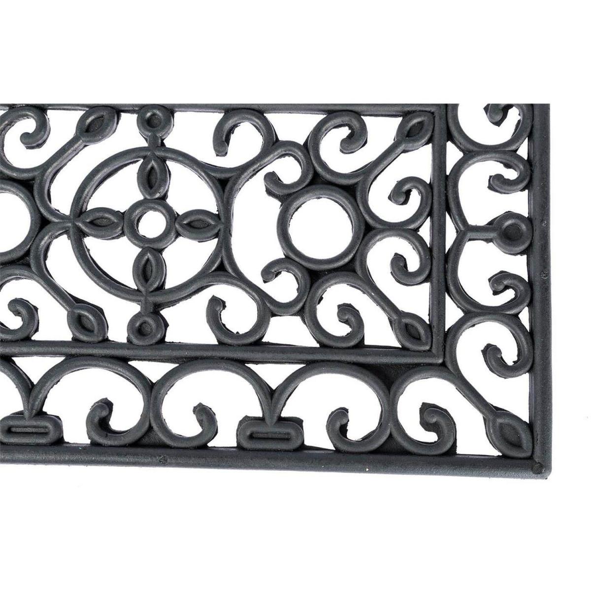 Black Wrought Iron Effect Parisian Style Rectangular Rubber Doormat - Black