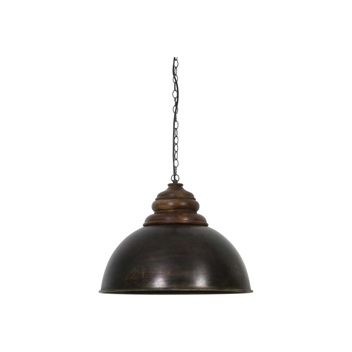 Rustic meets industrial in the Black Zinc and Wood Hanging Lamp. Featuring a domed shape, the pendant light directs its shine downwards, making it ideal for entryways, dining tables and kitchen islands. Its distressed metal lightshade and turned wooden detailing give a real nod to vintage style, in deep earthy hues that will stand out against any ceiling. Suited to both modern and traditional interiors, this pendant light is understated in design, yet sized to make a statement.
