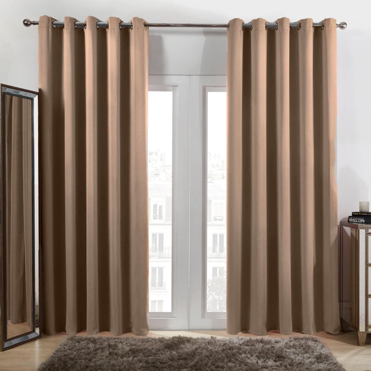 Blackout Eyelet Pair Of Thermal Curtains - Beige / 2.4kg / 66" wide x 90" drop