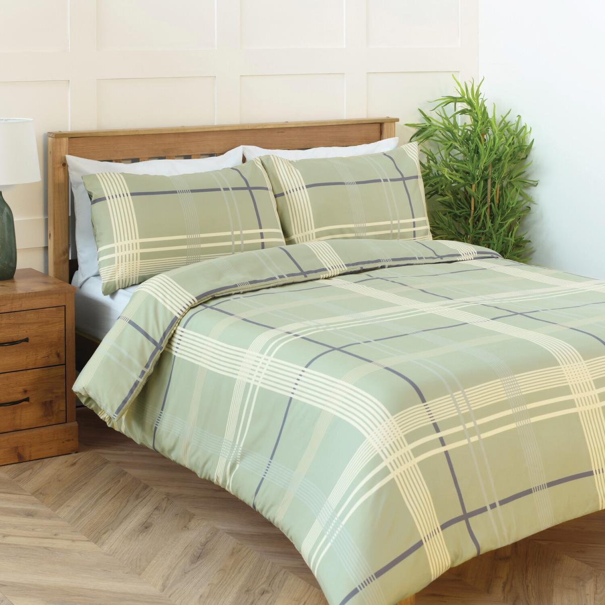 Blair Check Duvet Cover and Pillowcase Set - Sage / Single