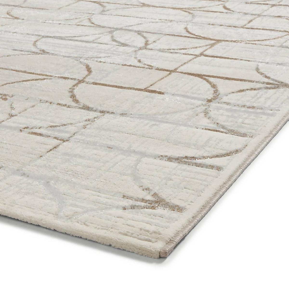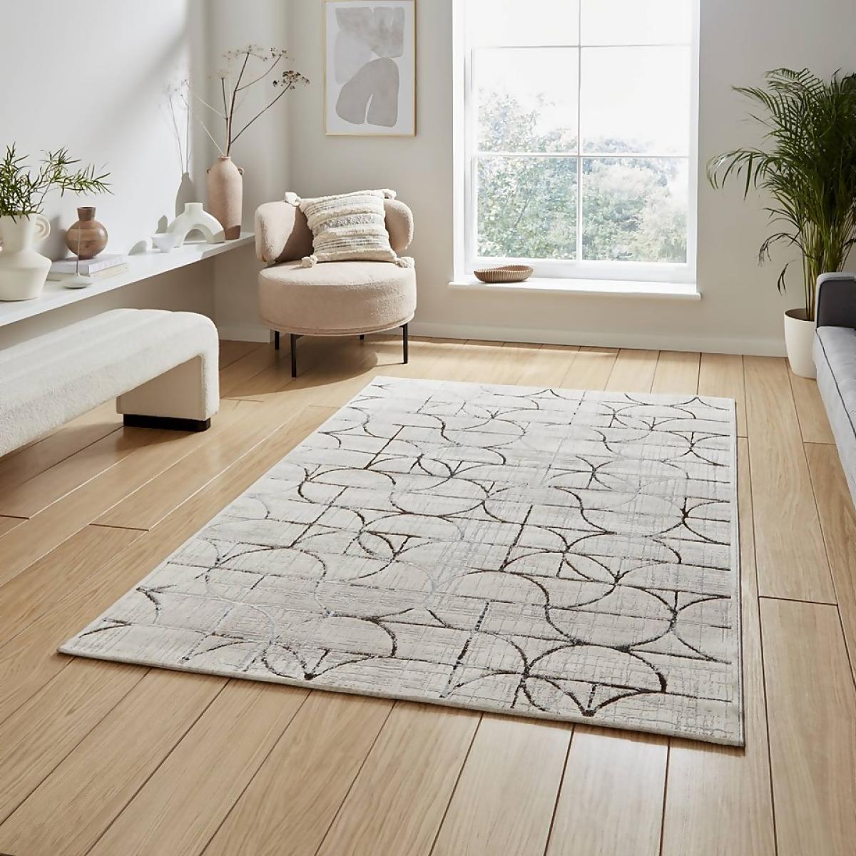 The Blair Modern Multi Textured Super Soft Geometric Rug in cream and silver, the perfect addition to any modern living room. Measuring 160x230cm this rug is made from high-quality polypropylene, ensuring durability and longevity.
