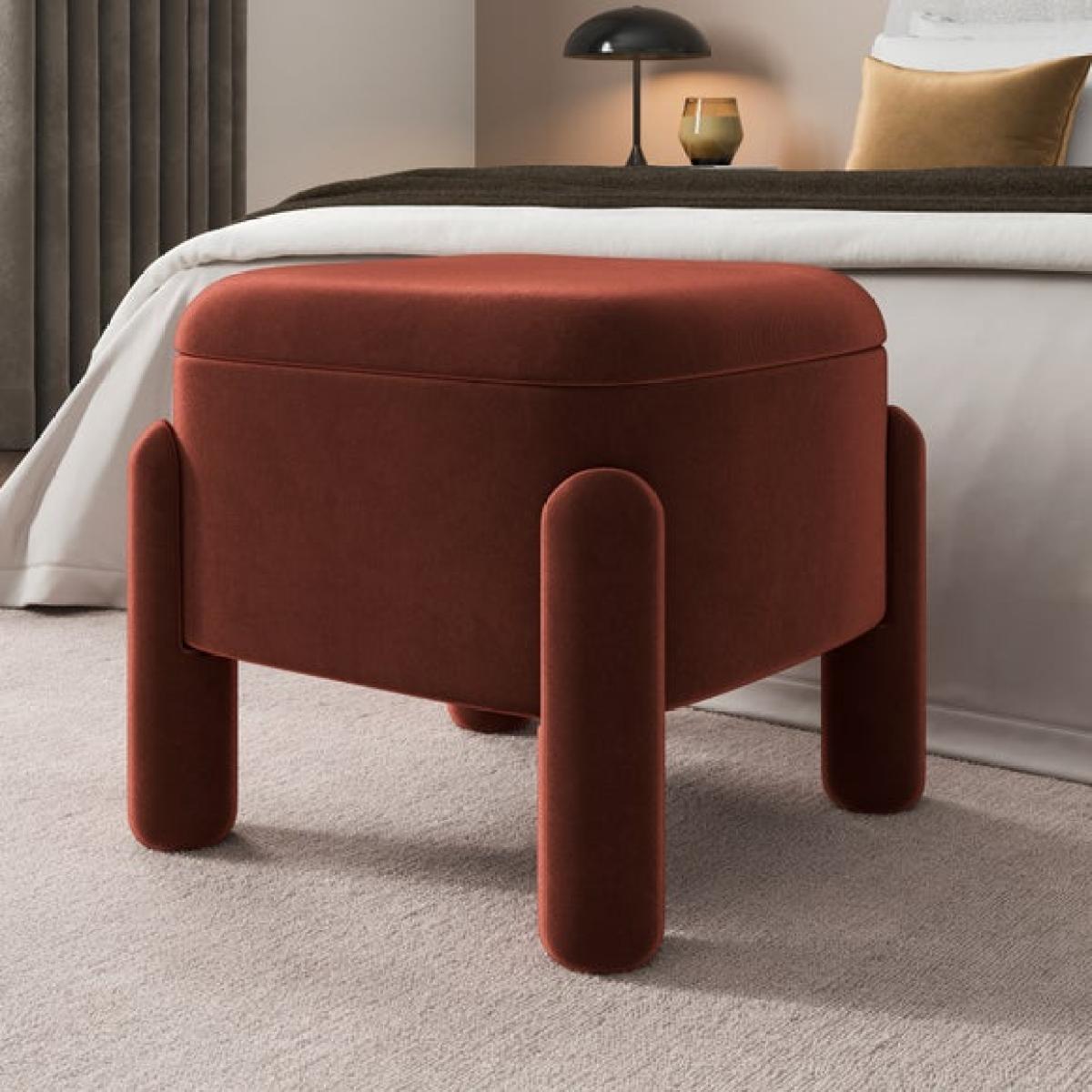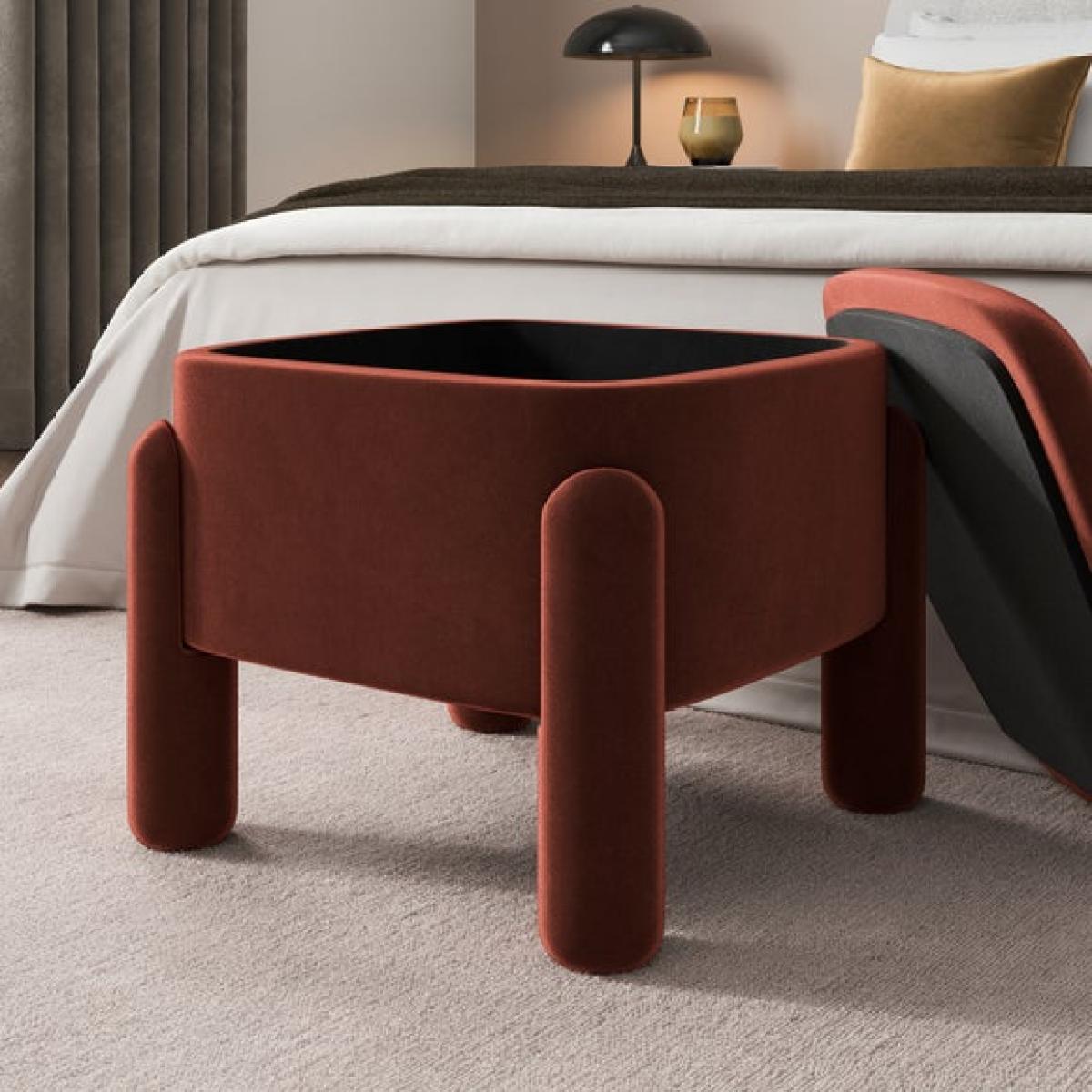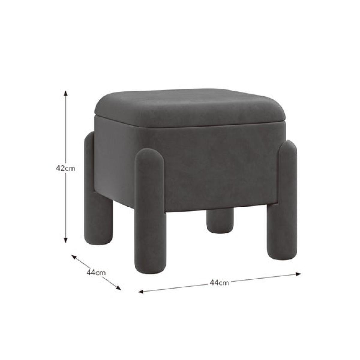 * Hidden storage space * Soft velvet upholstery * Modern square design * Curved upholstered legs * Available in a choice of colours Add a touch of elegance and practicality with the Blaire Velvet Storage Footstool. Its plush velvet finish and curved legs create a stylish statement, while the discreet storage compartment keeps clutter out of sight. Perfect for extra seating or as a chic accent piece, this footstool works beautifully in any room. Choose from rich navy, warm olive, or bold redwood to complement your décor.