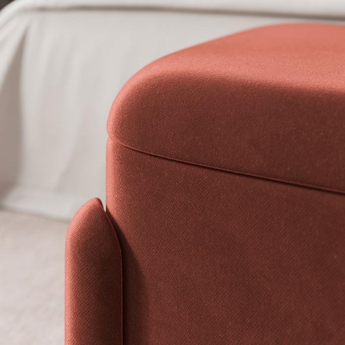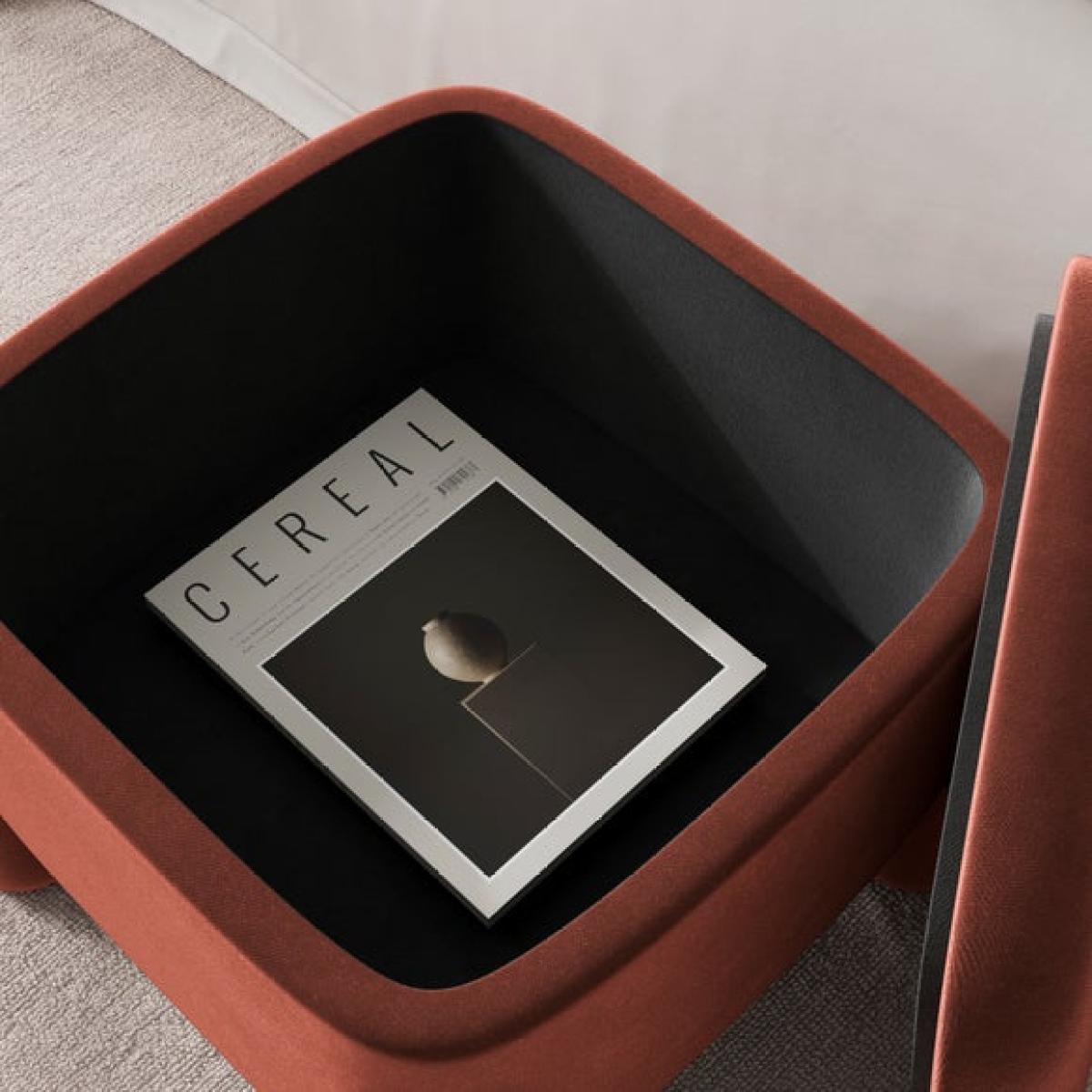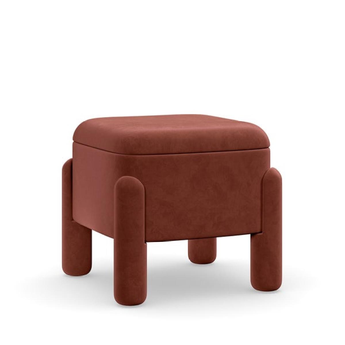 * Hidden storage space * Soft velvet upholstery * Modern square design * Curved upholstered legs * Available in a choice of colours Add a touch of elegance and practicality with the Blaire Velvet Storage Footstool. Its plush velvet finish and curved legs create a stylish statement, while the discreet storage compartment keeps clutter out of sight. Perfect for extra seating or as a chic accent piece, this footstool works beautifully in any room. Choose from rich navy, warm olive, or bold redwood to complement your décor.