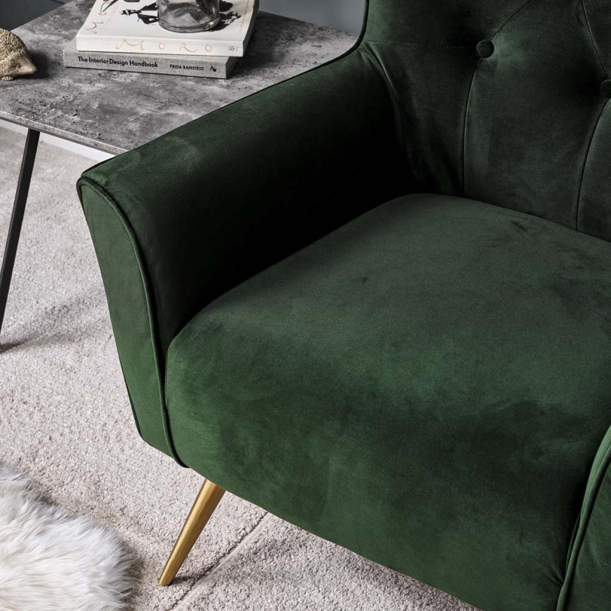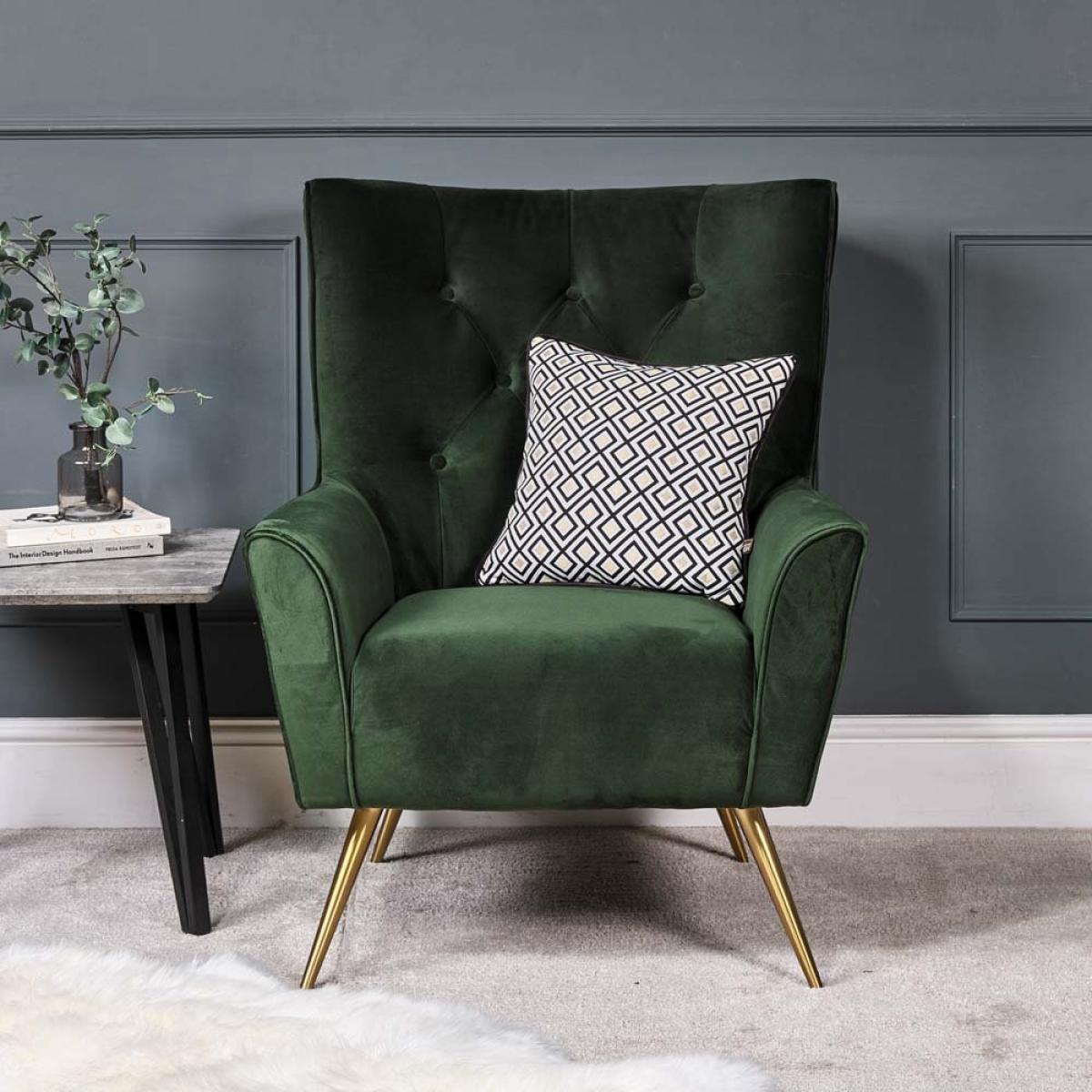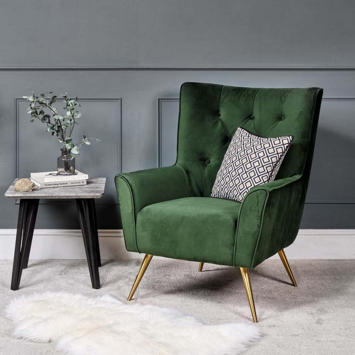 . Combining a traditional armchair with a modern velvet twist the Blake is the ideal contemporary occasional chair for any office or living room. The high buttoned back and wide arms add to the comfort and sophisticated style of this chair, while the brass tapered legs give the chair a sophisticated edge. The soft velvet is available in four colours Blue, Green, Mustard and Grey. *Velvet Upholstery *Buttoned Back *Brass tapered legs *Simple Self Assembly *Dimensions:W: 82cm D:88cm H:104cm *Dimensions:W: 82cm D:88cm H:104cm