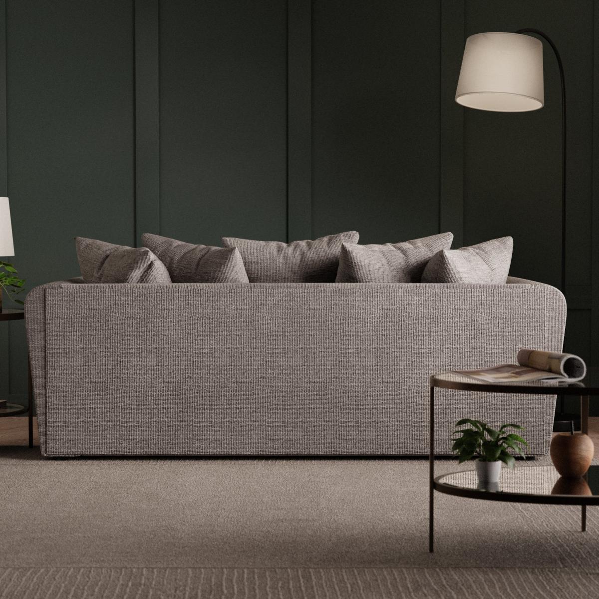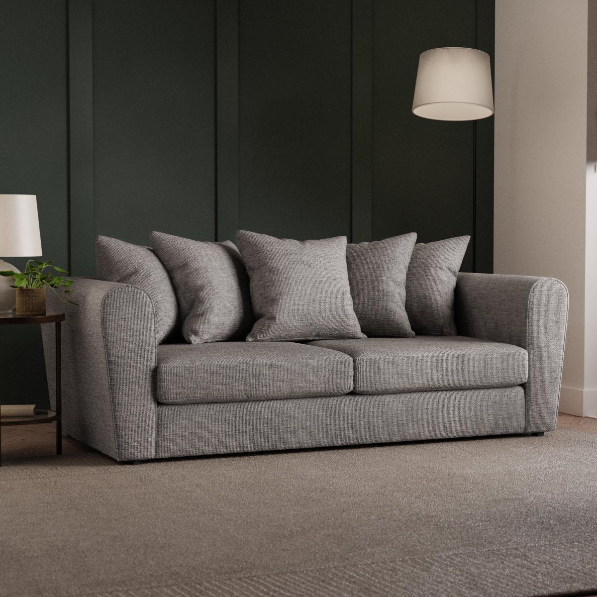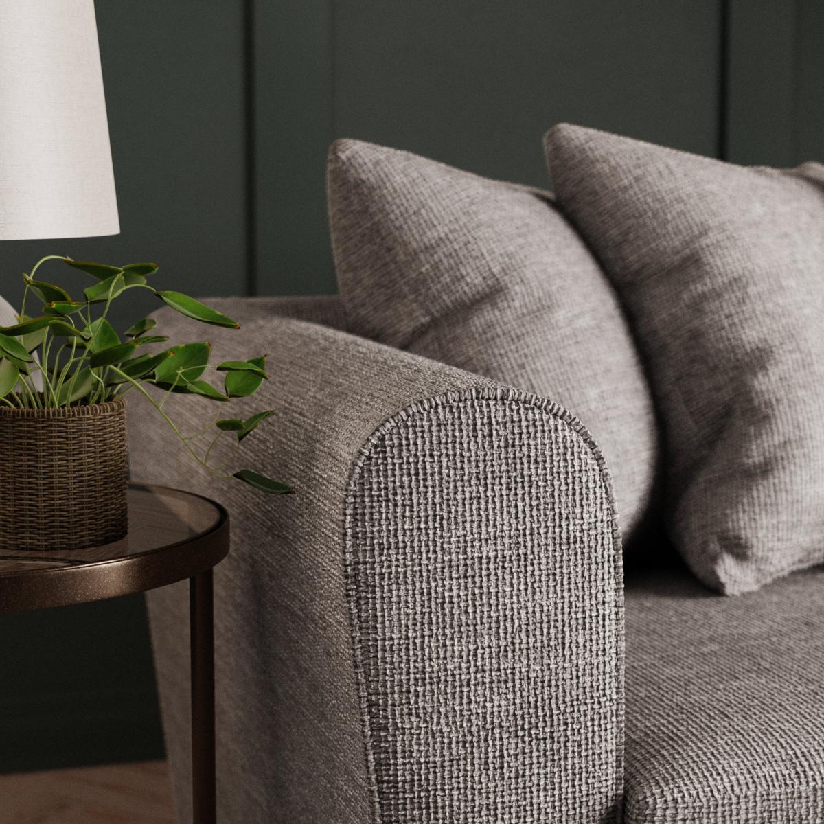 I love this chunky chenille sofa for its inviting texture and contemporary shape, which brings an element of plush comfort to any living space. Its curved arm design creates a softer, more relaxed vibe, making it ideal for casual, cosy interiors or modern minimalist schemes. It works beautifully in neutral tones like this silver, but can also be styled with colourful or patterned cushions to add personality. Practical tips include pairing it with a low coffee table for a laid-back look, incorporating layered textiles like throws or rugs for added warmth, and keeping accessories minimal to let its streamlined silhouette stand out. Overall, it's a versatile piece that balances style and comfort effortlessly.