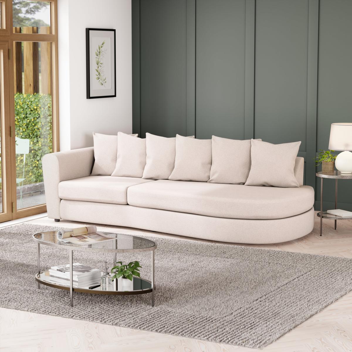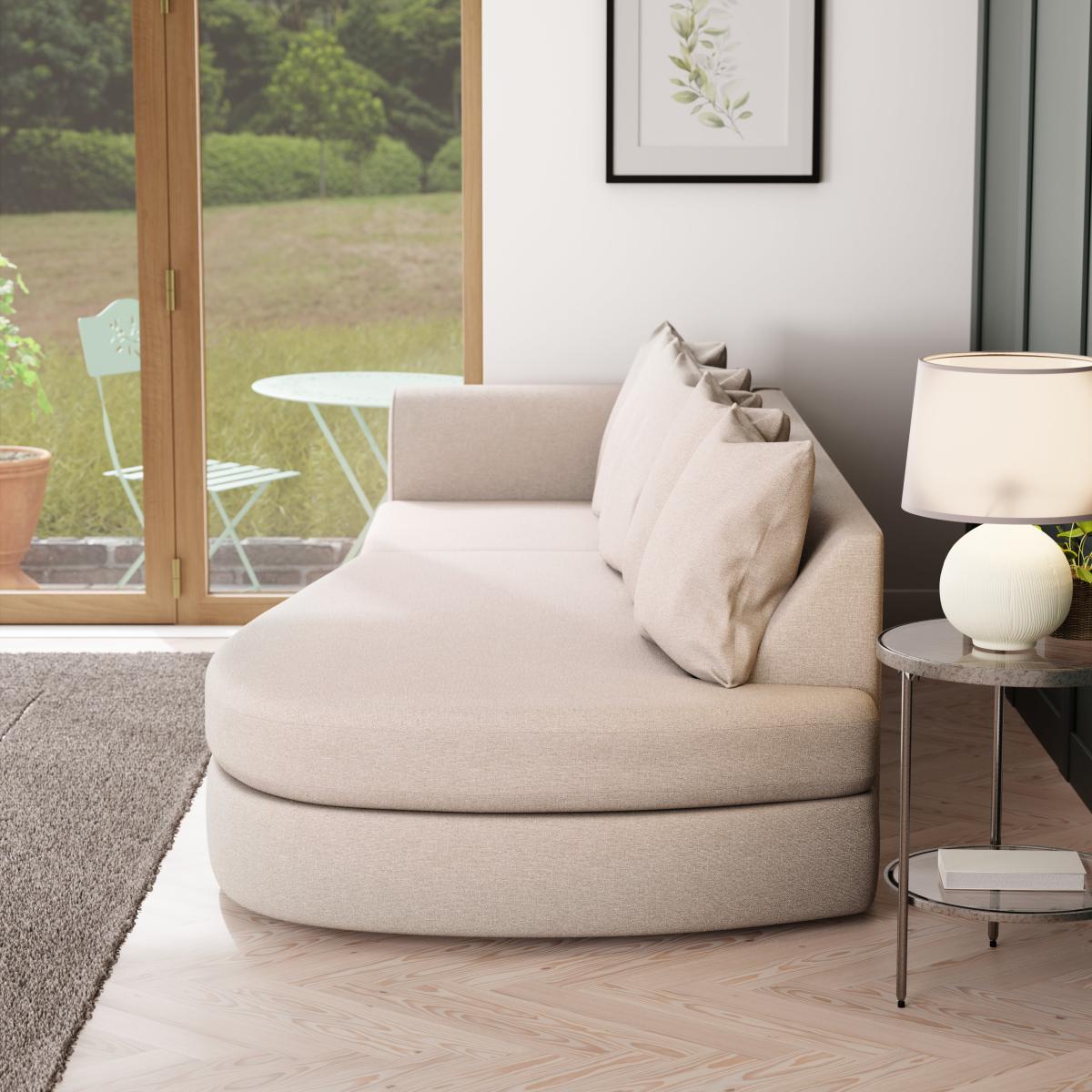 I think the Blake curved arm scatter back sofa is a versatile piece that works really well in both contemporary and more relaxed, neutral interiors. The soft texture adds a sense of comfort and tactile interest, making it ideal for everyday living spaces. I love how its curved design softens the overall look of a room, creating a welcoming feel. When styling, it pairs beautifully with minimalist, modern tables and accessories in natural or muted tones to keep the look cohesive. For a more vibrant scheme, add colourful cushions or throws to create visual pop without overwhelming the soft, natural vibe of the sofa. Its shape also lends itself well to open-plan living, helping define zones while maintaining a sense of flow.