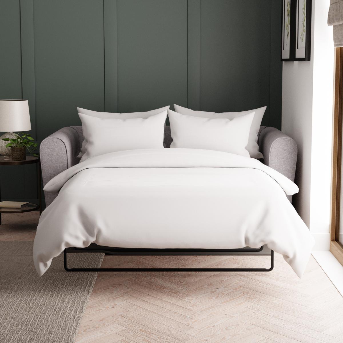Our sofa bed is the perfect place to sit back, relax and stretch out for a snooze. A blend of sumptuous soft textures and comfy foam-filled seat cushions make this sofa bed a great place to kick back on. With its compact design, it can easily fit into any room or space and quickly convert into a comfortable double bed. Curved arm range introduced in October.