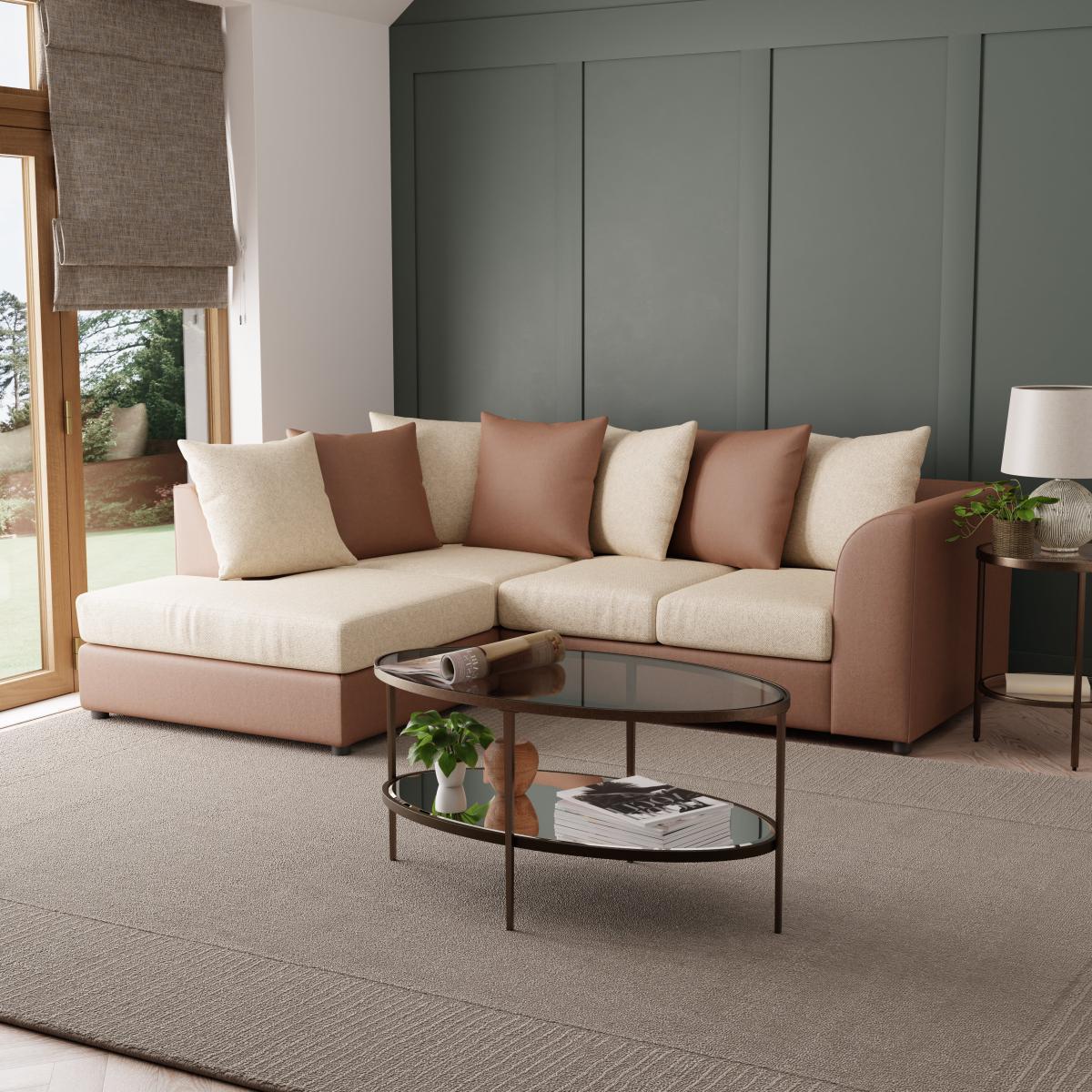 Upholstered in a PU leather with complementing Jumbo cord fabric cushions, the luxuriously comfortable Blake Left Hand Corner Sofa is available in a choice of stylish colours and features soft foam-filled seats, whilst the corner chaise provides the perfect place to put your feet up. Complete with a cosy fibre filled scatter cushion backrest, this stunning sofa would be a great addition to any modern home. Care Instructions: Wipe regularly with soft cloth to remove dust. Avoid using detergents or allowing the fabric to become wet as this can damage the fabric. Plump fibre filled cushions regularly to keep their shape. Keep upholstery out of direct sunlight to avoid discolouring. Did you know, we now offer a 10 year frame guarantee on this sofa. To find out more, please. To check out our handy sizing guide to help you find out if you’ll be able to get your new furniture into your home.