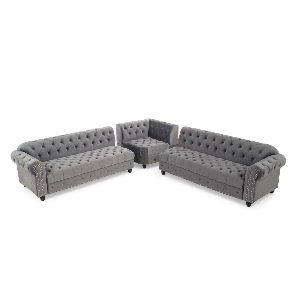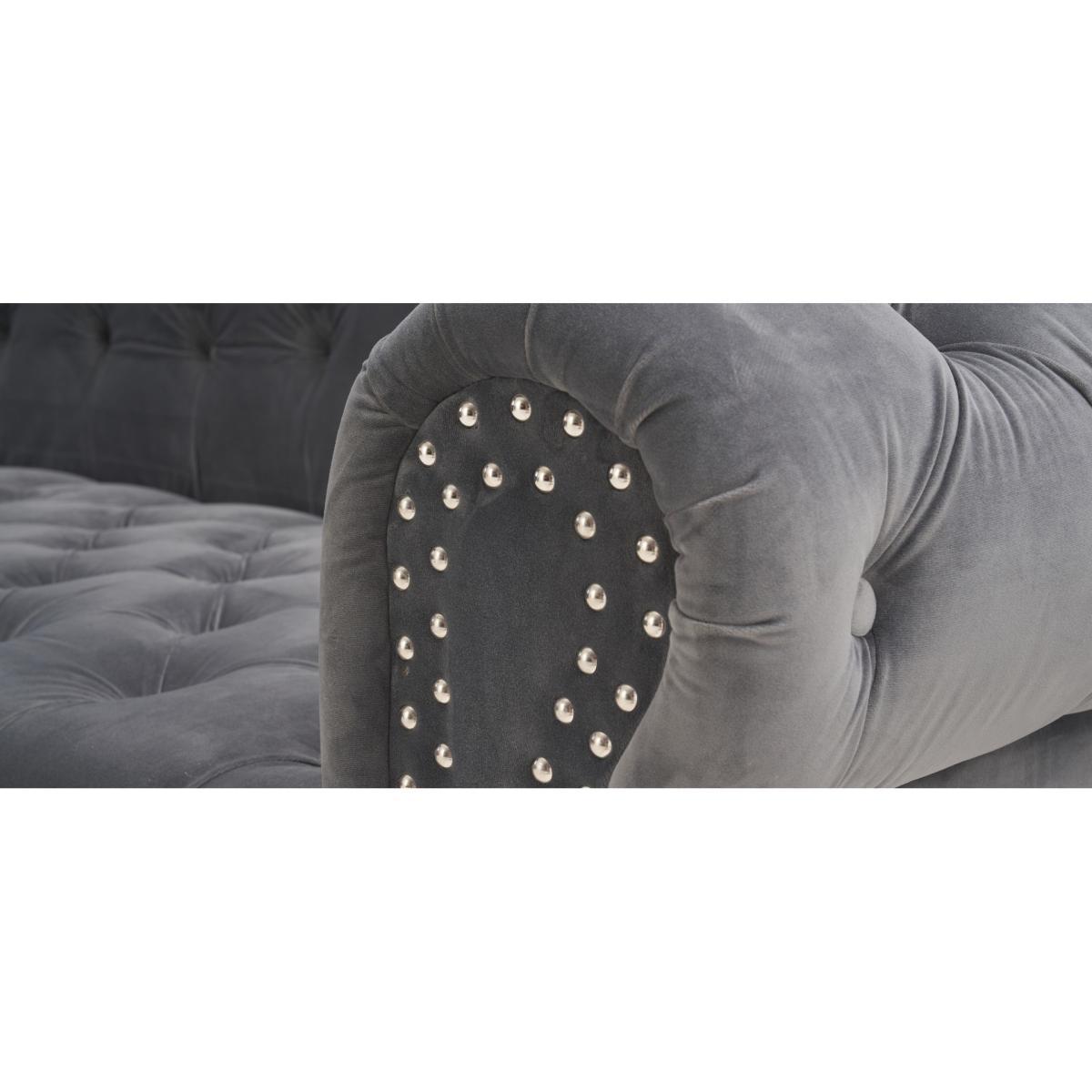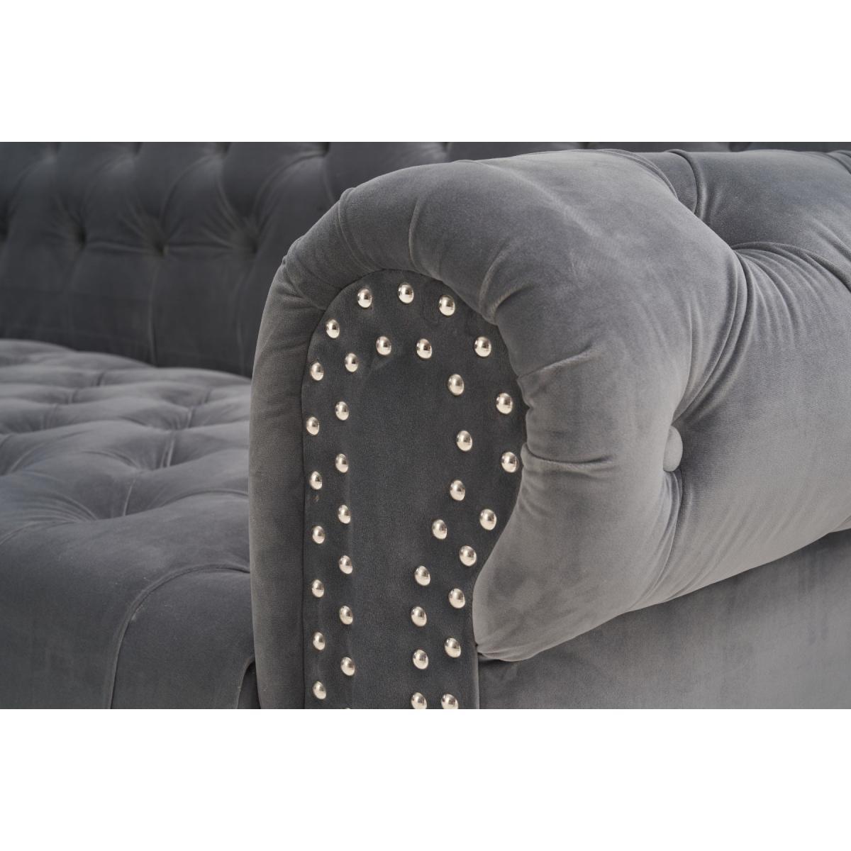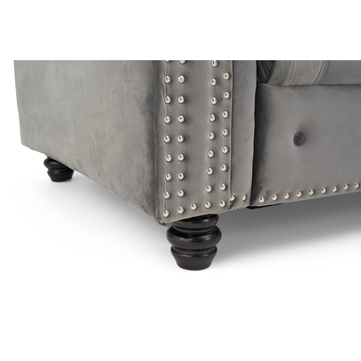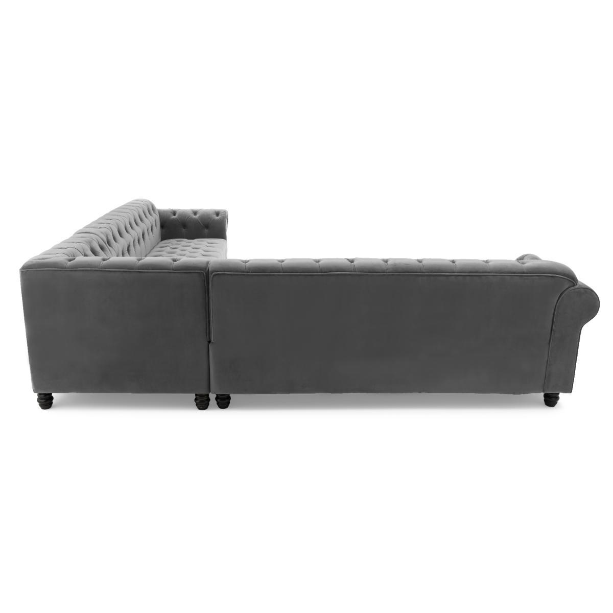 By pairing contemporary and time-honoured design elements the Blake sofa fits perfectly in modern or classically styled homes. Upholstered in a smooth velvet and boasting deep foam cushioning for the ultimate comfort and featuring a contemporary deep buttoned Chesterfield-inspired design - this sofa is sure to turn heads. Functional and stylish. Upholstered in striking grey velvet Corner sofa. Generously sized