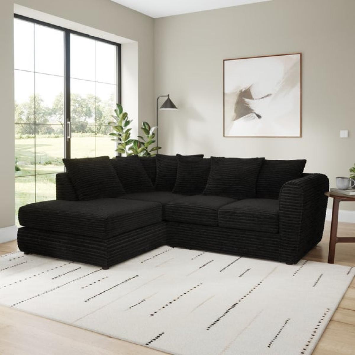 * Contemporary sofa* Foam filled cushions* Roll top arms* Black legs* Tested up to 110kg Made for stretching out and staying in, this corner chaise sofa is the ultimate in relaxed living. Upholstered in soft, wide-ribbed jumbo cord, it brings a cosy, tactile texture that’s as inviting as it is stylish. The chaise end is perfect for putting your feet up, while the spacious seating area makes room for everyone to lounge in comfort. Serpentine seat springs and foam cushions wrapped in soft fibre provide lasting support with a sink-in feel, and the fibre-filled back pillows mould to your shape for personalised comfort. Finished with gently splayed roll-top arms, it’s a laid-back statement piece that doesn’t compromise on style.