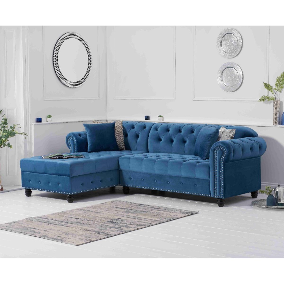 Blake Left Facing Blue Velvet 3 Seater Chaise Corner Sofa