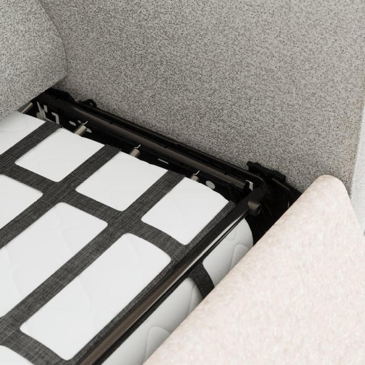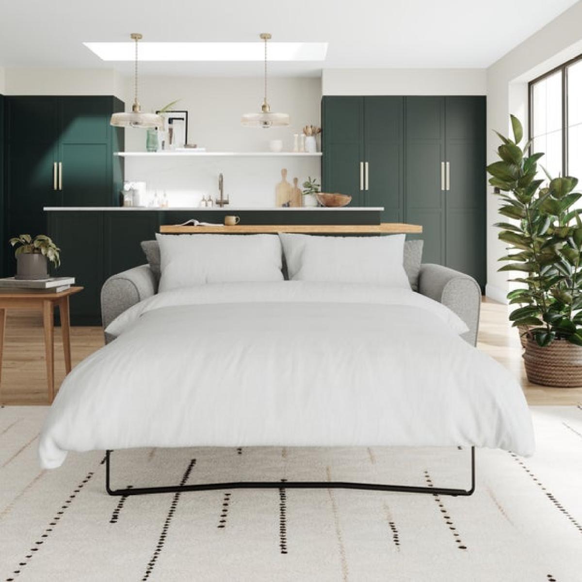 I love this sofa bed for its versatile style and multi-textured finish, which adds visual interest without feeling overly busy. It works well in modern, Scandinavian, or contemporary interiors thanks to its clean lines and neutral tone, making it easy to adapt with different colour schemes and accessories. Practical styling tips include pairing it with soft, layered bedding and minimalist cushions for a relaxed look, and adding a statement rug or artwork to create a welcoming focal point. Its compact design and functionality make it ideal for smaller spaces or multi-use rooms, balancing practicality with a sleek aesthetic.