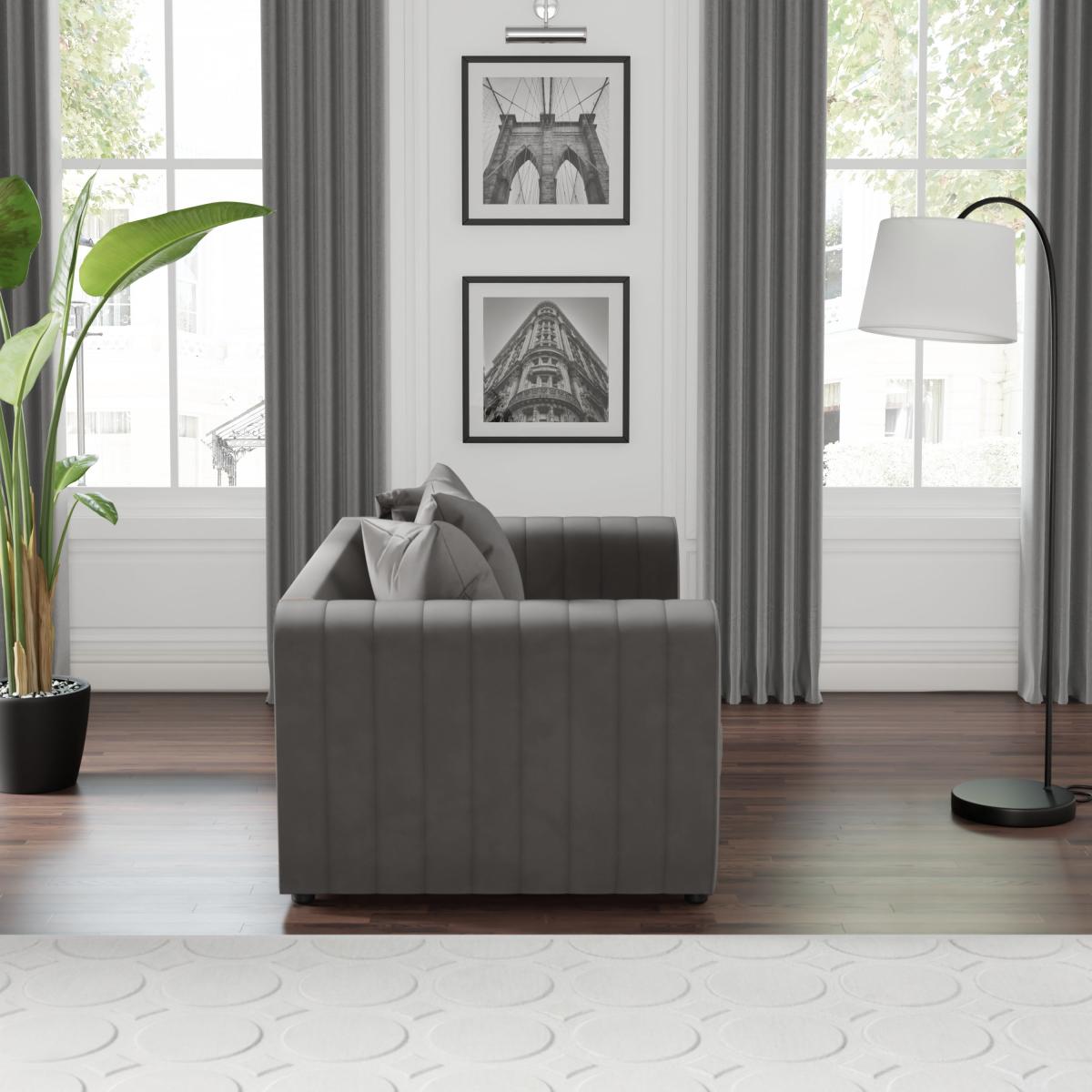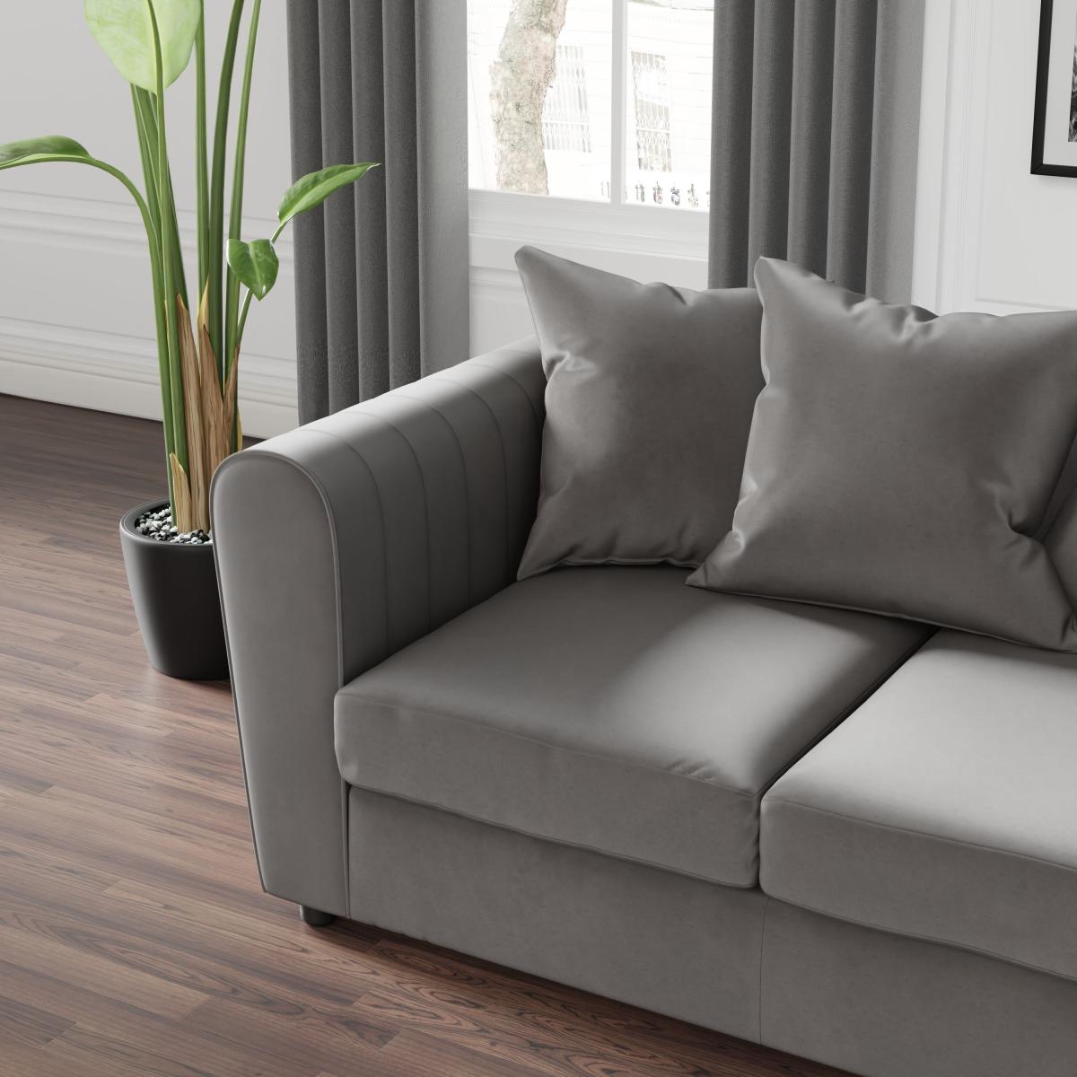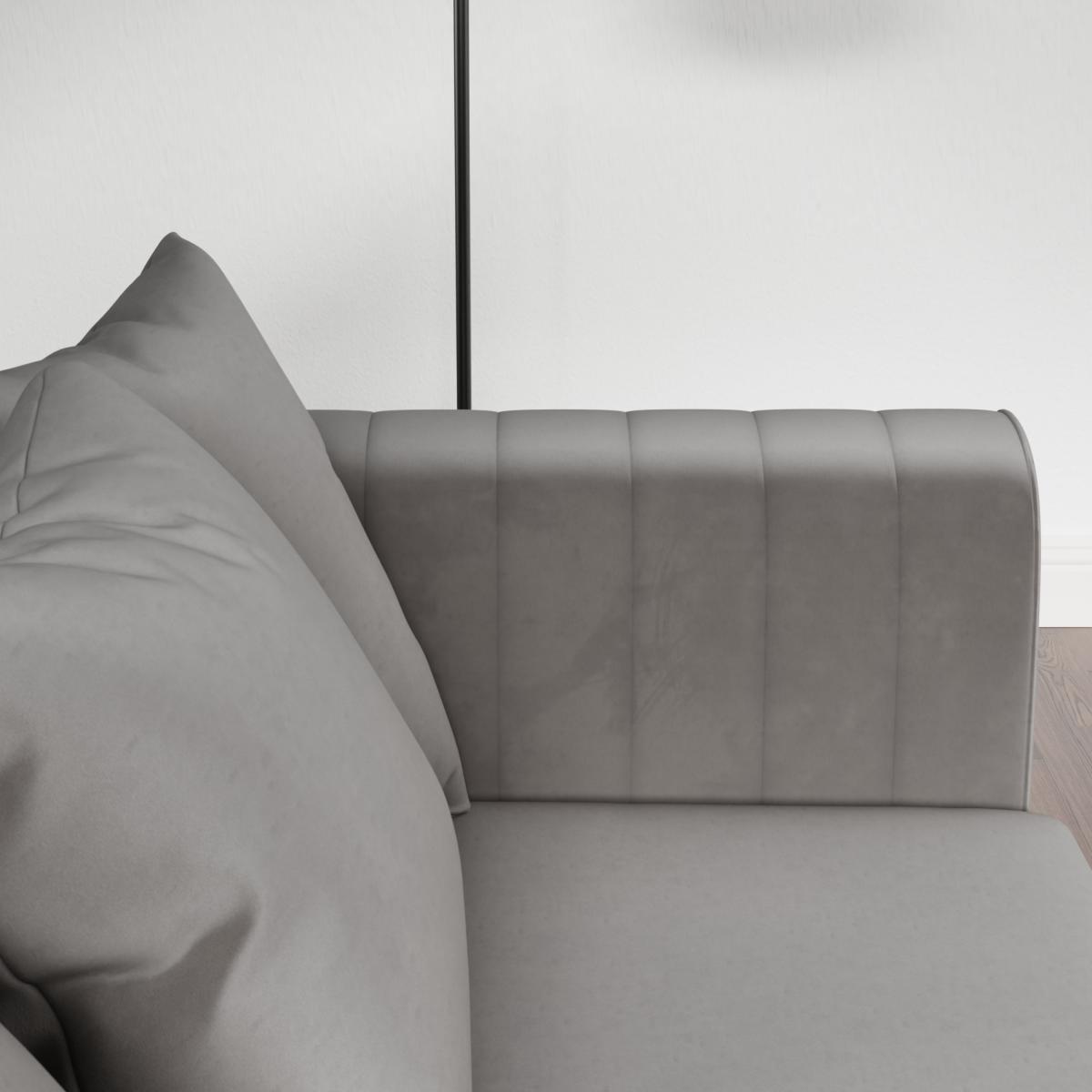 I really like this sofa’s sleek, curved silhouette and plush velvet finish, which makes it a versatile choice for both classic and contemporary interiors. The grey hue is neutral enough to work across various colour schemes, giving it flexibility in styling. It’s great for creating a cosy, inviting feel, especially in living rooms or relaxed sitting areas. For practical styling, layer with textured cushions or throws in complementary colours to add depth and personality. Pairing it with minimalist or neutral accessories ensures the sofa remains the focal point, while also allowing you to introduce colour through other decorative elements such as rugs, artwork, or accent chairs. Overall, this piece is a smart, stylish addition that balances comfort and sophistication.