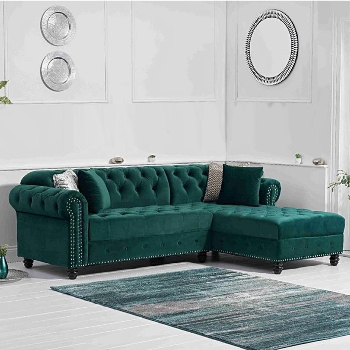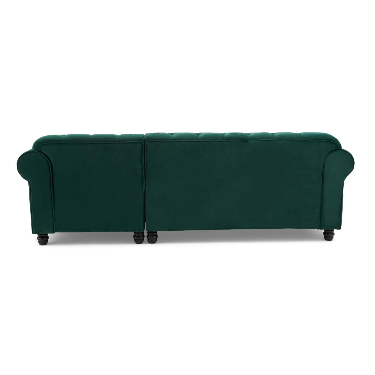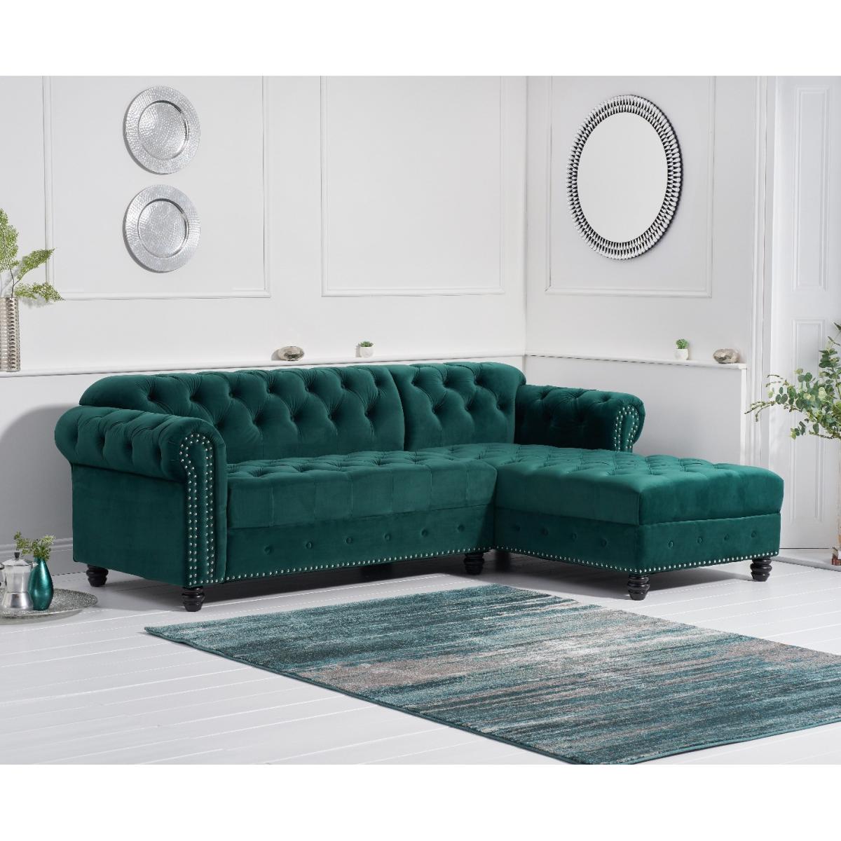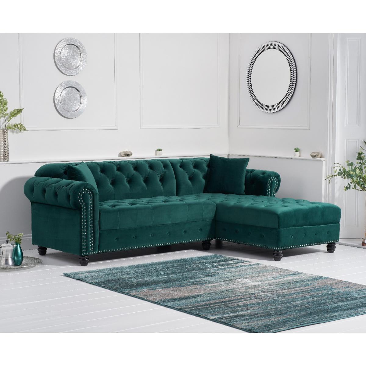 Blake Right Facing Green Velvet 3 Seater Chaise Corner Sofa