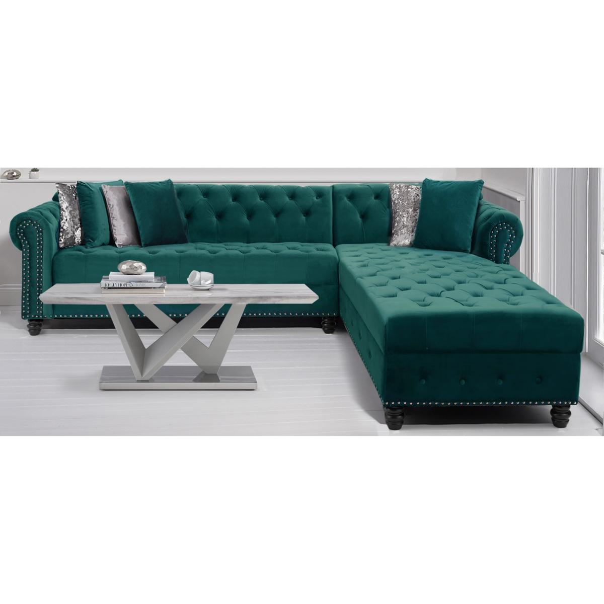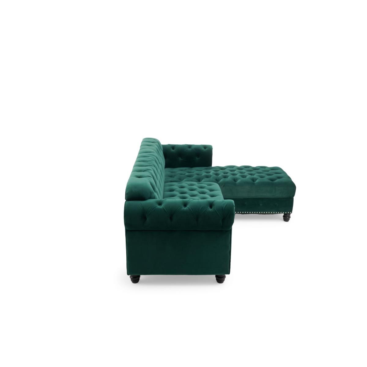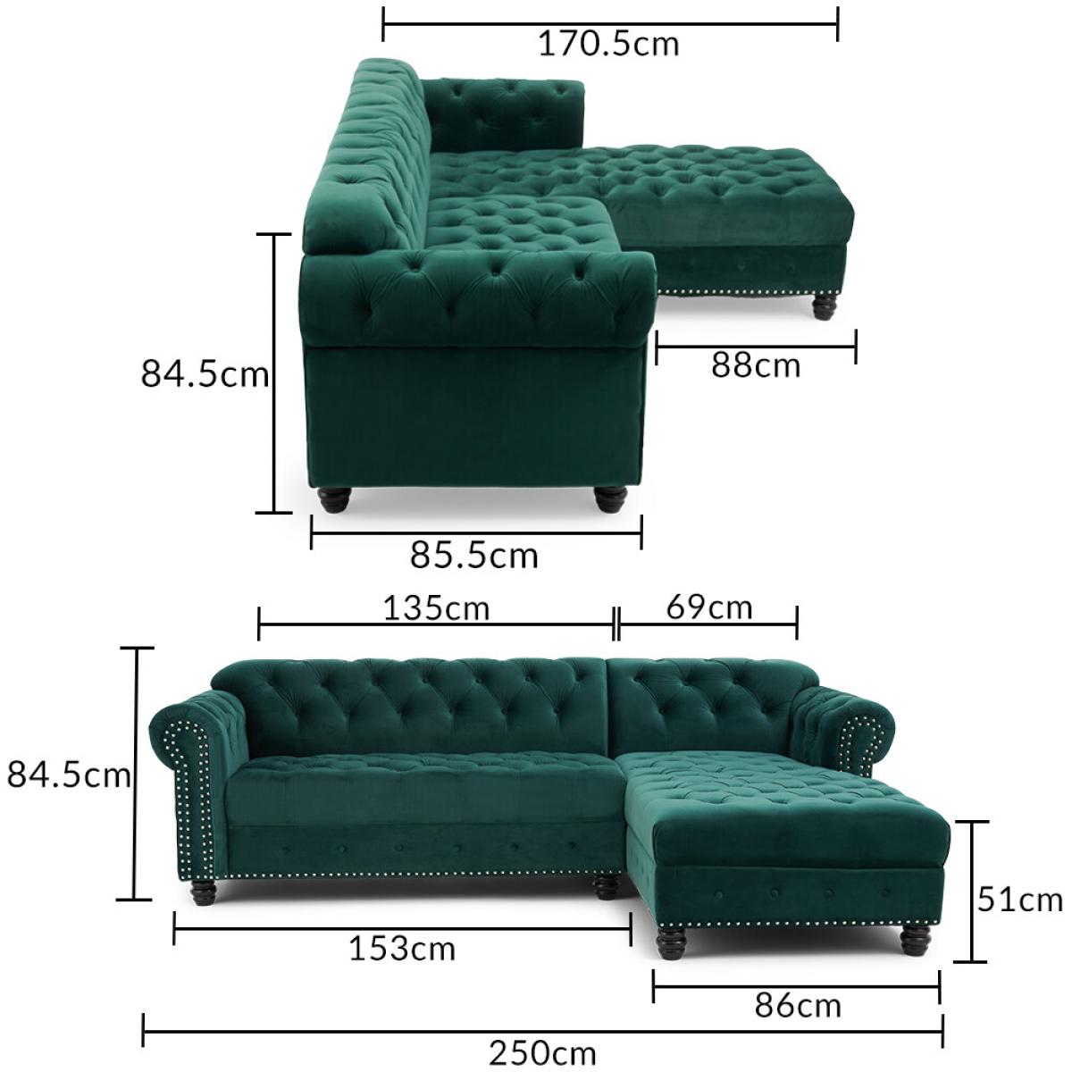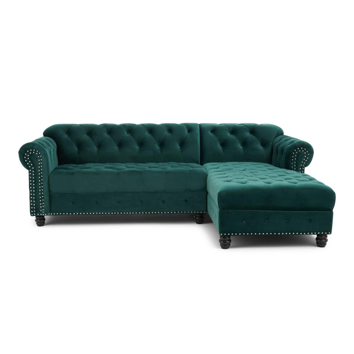 Blake Right Facing Green Velvet 3 Seater Chaise Corner Sofa