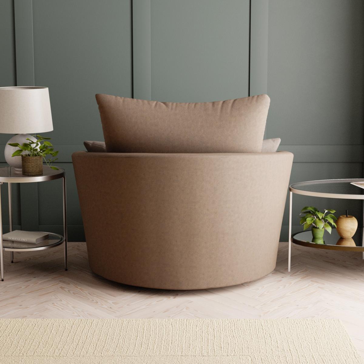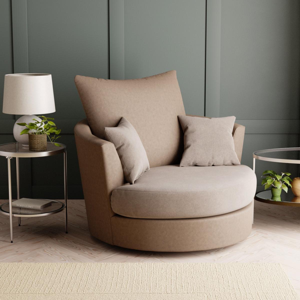 Available in a choice of colours, the Blake Swivel Chair boasts distinctive PU leather upholstery, paired with jumbo cord fabric cushions for a modern style that will liven up any living space. Boasting a compact design perfect for any space, this chair provides luxurious comfort thanks to the foam and fibre filling of the deep set cushions and sprung seat which allows you to really sink in and unwind. This stylish and versatile chair also swivels on a sturdy metal base and is the perfect piece to suit a variety of home settings and styles. Care Instructions:Wipe regularly with soft cloth to remove dust. Avoid using detergents or allowing the fabric to become wet as this can damage the fabric. Plump fibre filled cushions regularly to keep their shape. Keep upholstery out of direct sunlight to avoid discolouring. Did you know, we now offer a 10 year frame guarantee on this sofa. dunelm. dunelm. com/infodocs/downloads/Furniture-Sizing-Guide. pdf) to check out our handy sizing guide to help you find out if you’ll be able to get your new furniture into your home.