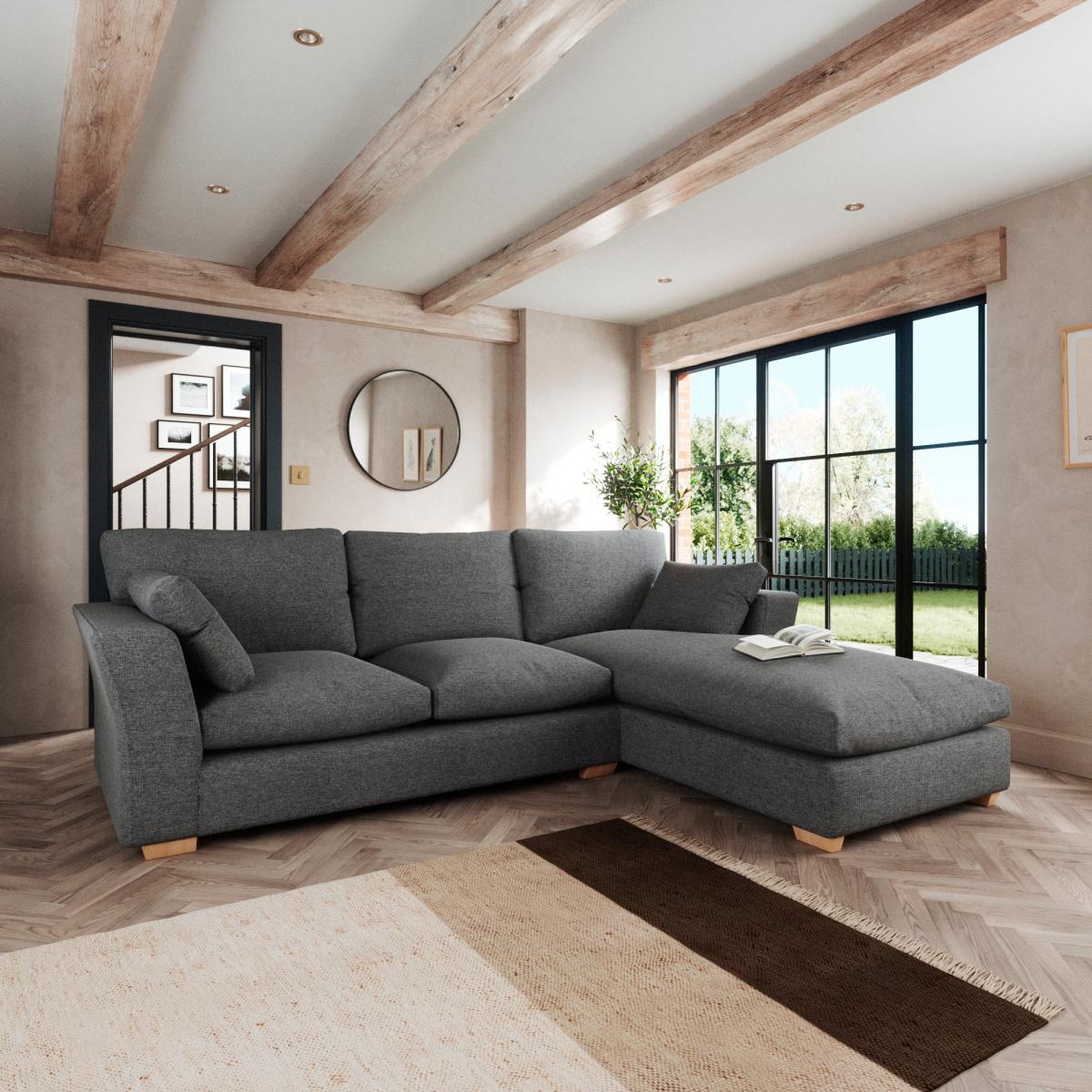 I love this corner sofa for its versatile appeal and tonal weave fabric, which adds subtle texture without overwhelming a space. It’s perfect for contemporary or modern interiors, especially those with neutral or monochrome colour schemes. The charcoal shade keeps it grounded and easy to style with a range of colours, from soft pastels to bold accents. Practical styling tips include accessorising with cosy cushions and throws to create a welcoming vibe, or pairing it with a sleek coffee table to keep things functional. Its corner design makes it ideal for open-plan living areas or larger rooms, allowing for comfortable lounging and socialising. Overall, a reliable choice for anyone looking to combine style with everyday practicality.