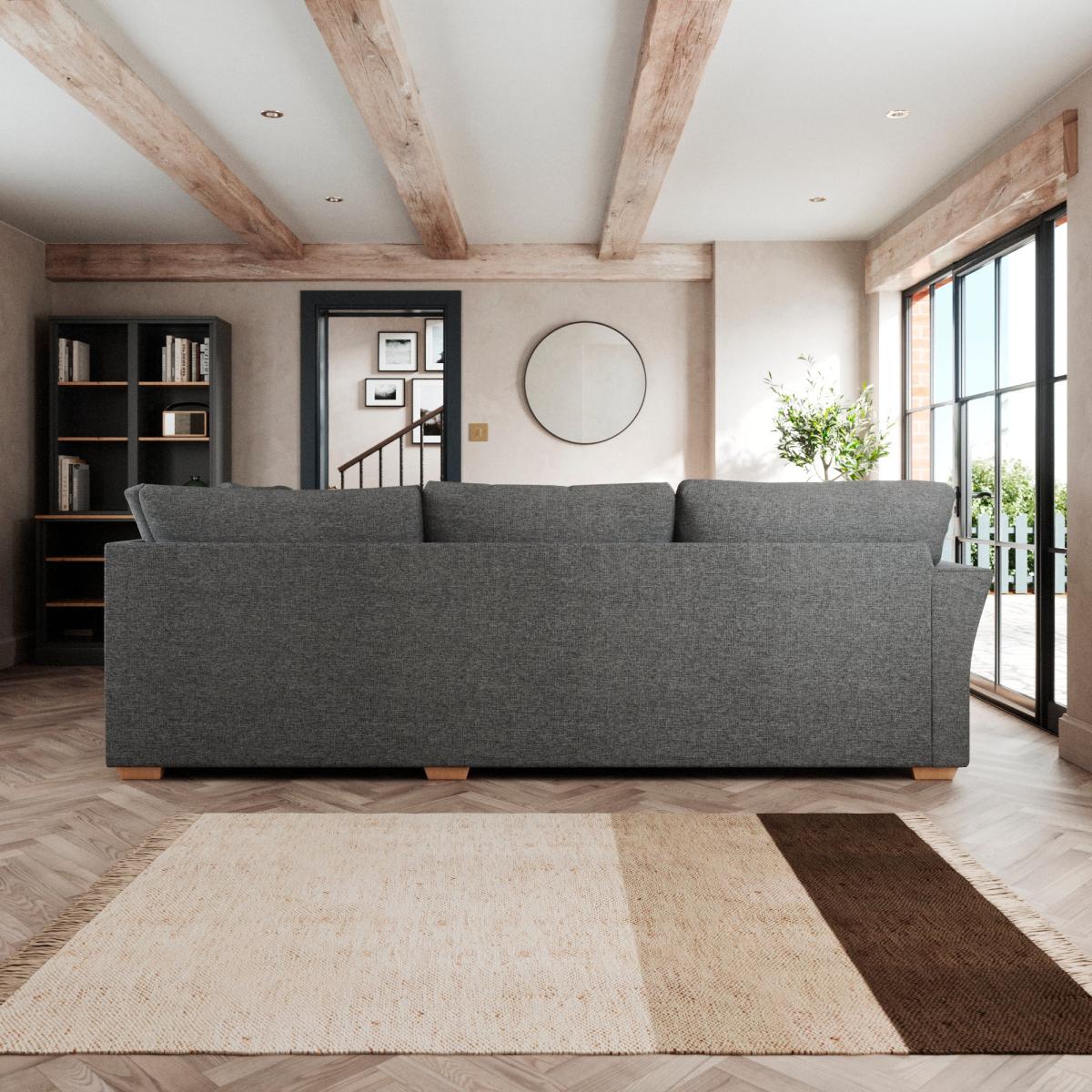 This corner sofa is a great choice for those wanting a versatile, understated piece that works well in both contemporary and more traditional interiors. I love the tonal weave fabric, as it adds subtle texture and helps hide everyday wear and stains, making it practical for family homes. Its neutral charcoal shade makes it easy to style with a variety of colour schemes; accessorise with cushions or throws in bold or muted tones to bring personality to your space. Practical styling tips include placing it against a feature wall, adding a mix of cosy throws for comfort, and pairing it with a statement coffee table to create a welcoming lounge area. Its generous size makes it ideal for larger living rooms, providing ample seating without overwhelming the space.