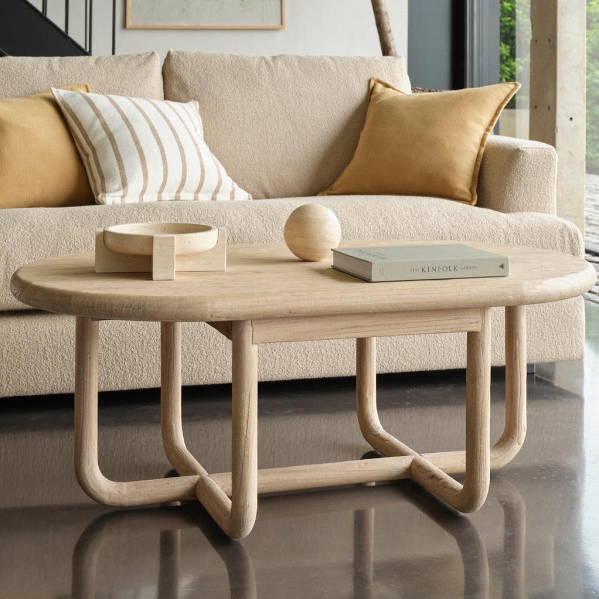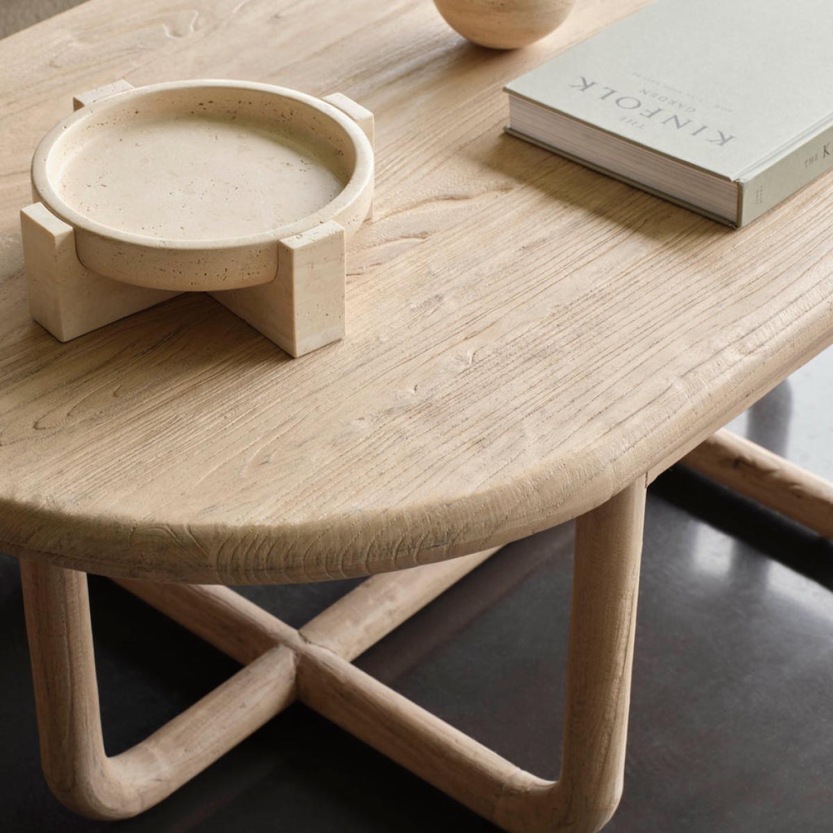 This wooden coffee table forms part of our new Blakeney range. A beautifully design made from reclaimed elm that has been finished in a light white wash. The modern curved edges of the legs provide a light and airy feel finished with a softly round top. A perfect size to place beside your sofa and rest your drinks on. Although please remember to use a coaster.