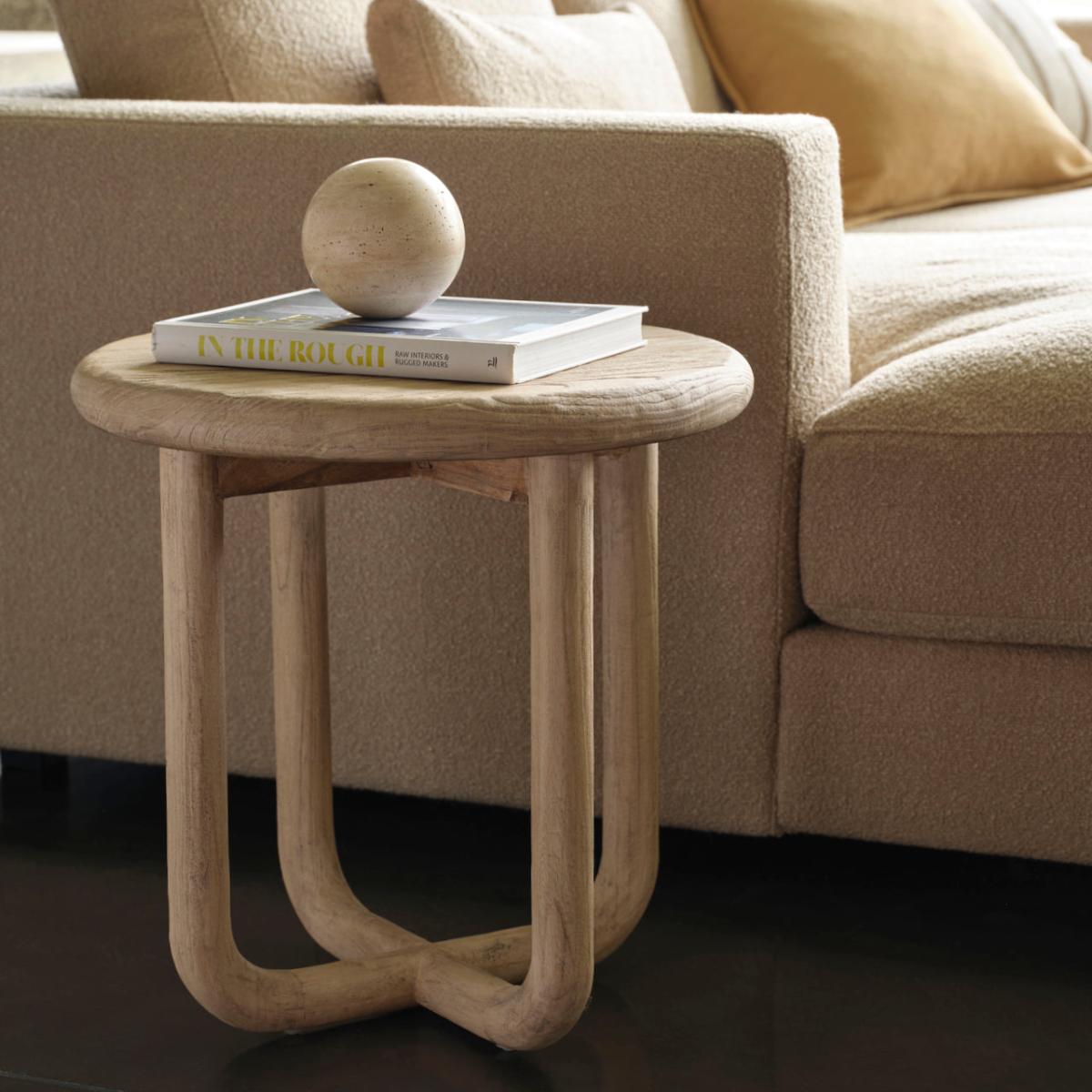 This wooden side table forms part of our new Blakeney range. A beautifully design made from reclaimed elm that has been finished in a light white wash. The modern curved edges of the legs provide a light and airy feel finished with a softly round top. A perfect size to place beside your sofa and rest your drinks on. Although please remember to use a coaster.