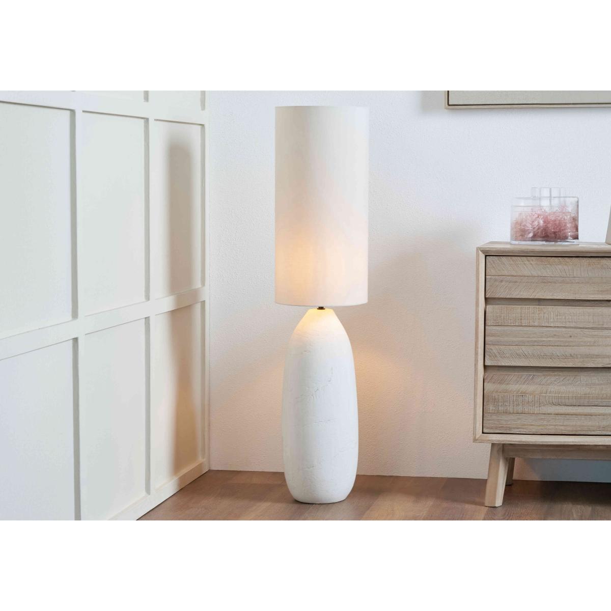 The ceramic Blanche floor lamp makes a stunning focal point for any home. Complemented by a soft neutral shade, its exquisite aged-effect base has a beautiful vintage feel. Why you'll love it Exudes timeless charm. Hand-crafted base with a tactile finish. Perfect size to make a statement. Off-white lined lampshade. Elevates coastal, Scandi or farmhouse-styled interiors. What you need to know Ceramic base. Lamp shade included. Foot switch. Requires 1 x LED E27 max. 12W bulb, not included. Supplied with 300 cm of cable. Dust with a soft, clean, lint-free cloth. Dimensions Height: 122 cm (49 in). Width: 29 cm (12 in). Depth: 29 cm (12 in).