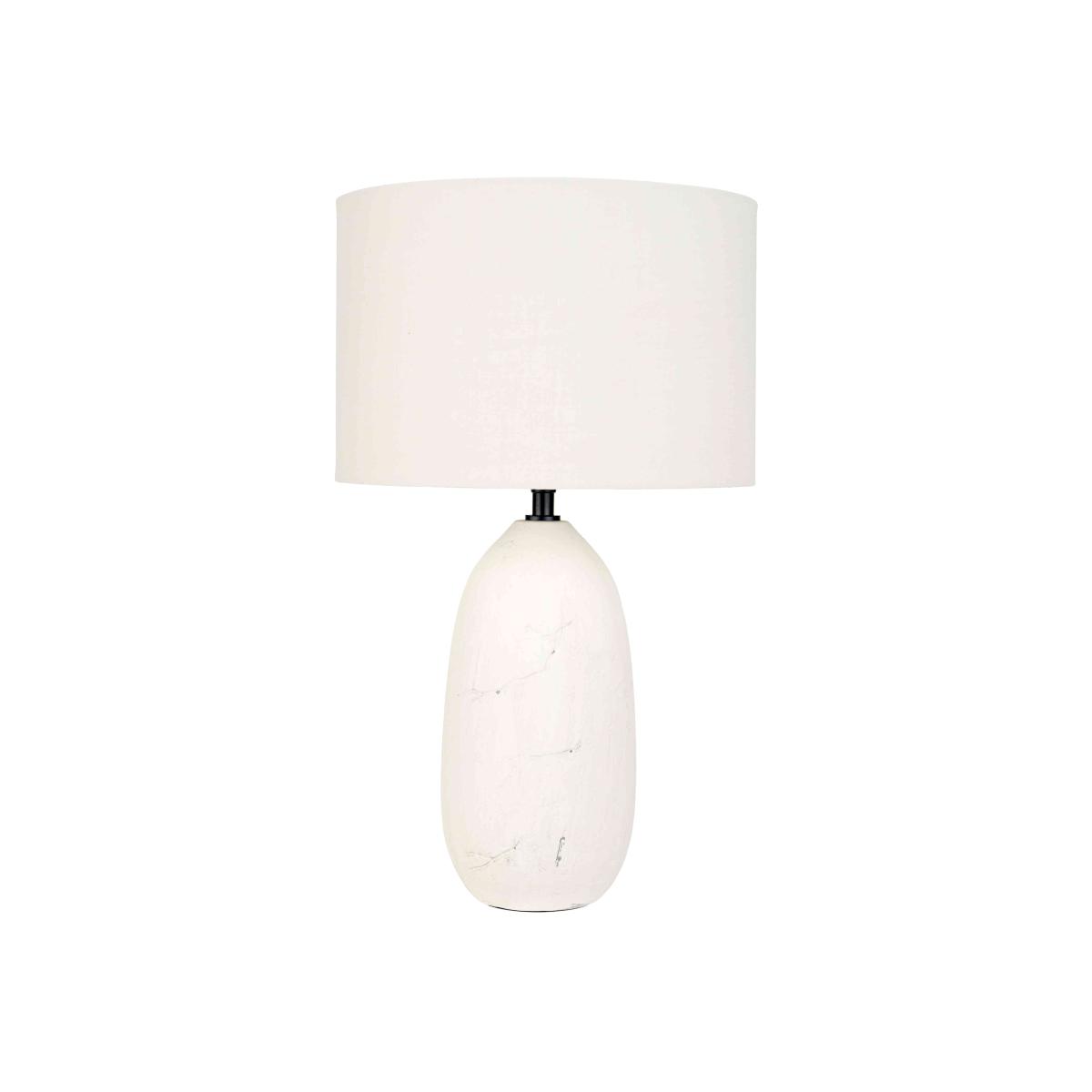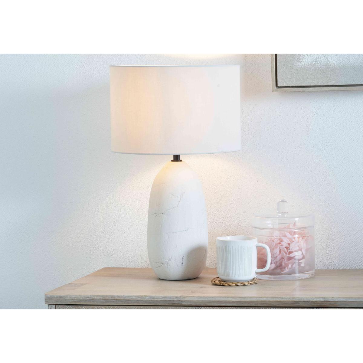 Transform the ambiance of any room with the Blanche table lamp. Oozing with character, its versatile design blends classic and contemporary elements. Why you'll love it Exudes timeless charm. Hand-crafted dome base. Elevated by a natural cracked-effect finish. Soft, neutral-toned lampshade. Perfect for coastal, Scandi or farmhouse-styled interiors. What you need to know Ceramic base. Lamp shade included. Requires 1 x LED E27 max. 12W bulb, not included. Supplied with 200 cm of cable. Dust with a soft, clean, lint-free cloth. Dimensions Height: 50 cm (20 in). Width: 30 cm (12 in). Depth: 30 cm (12 in).