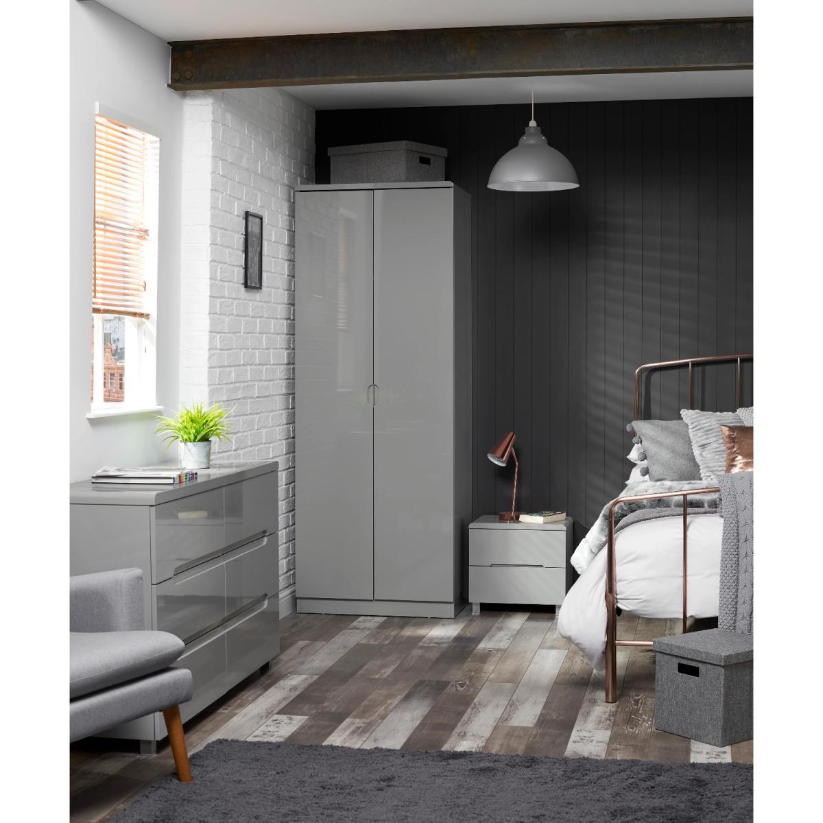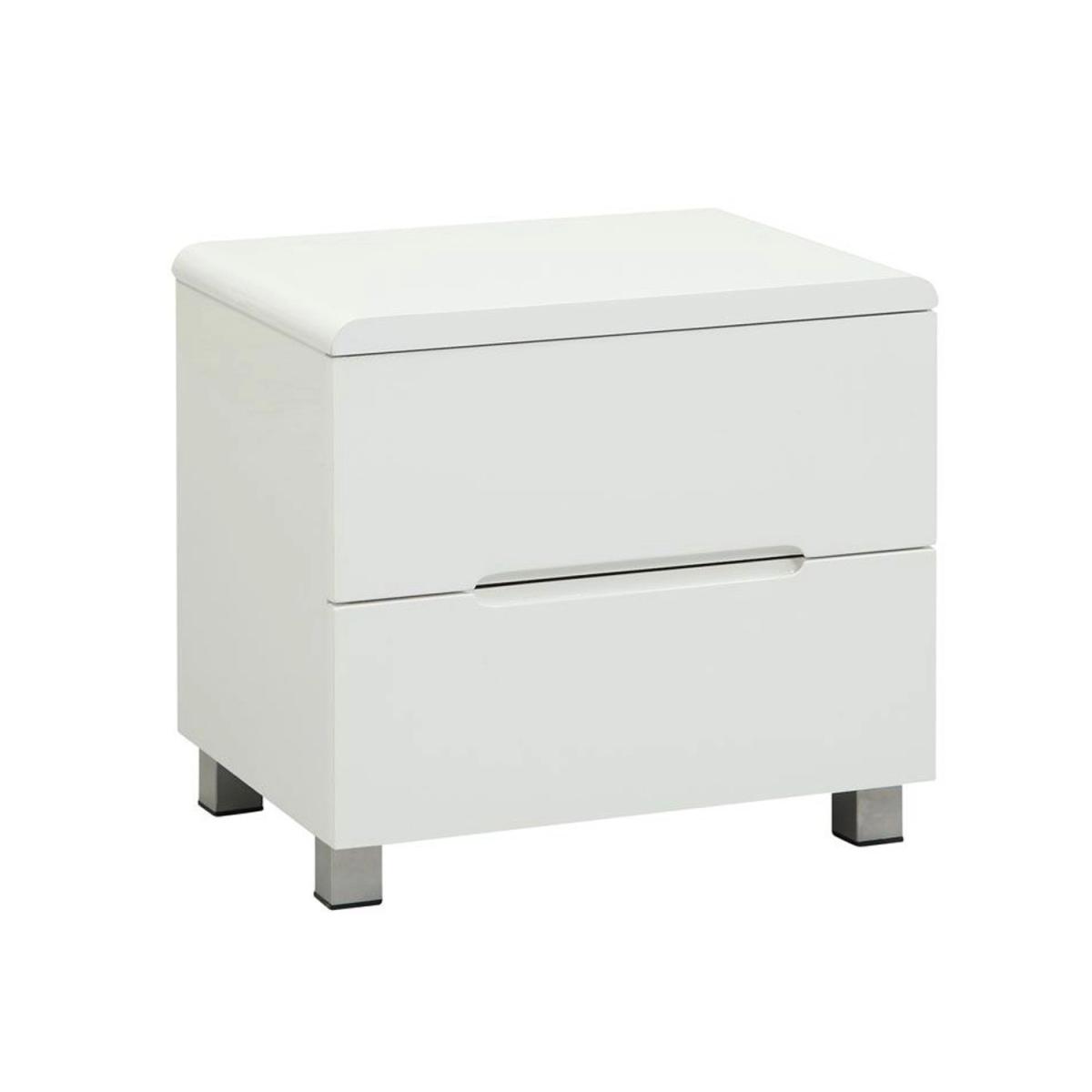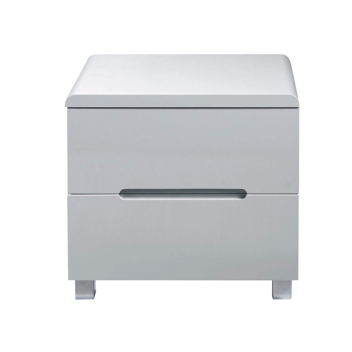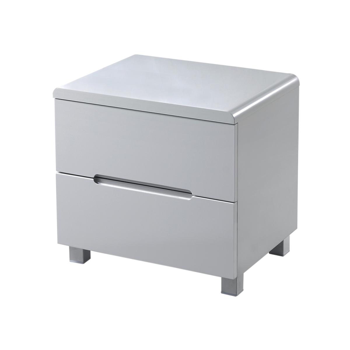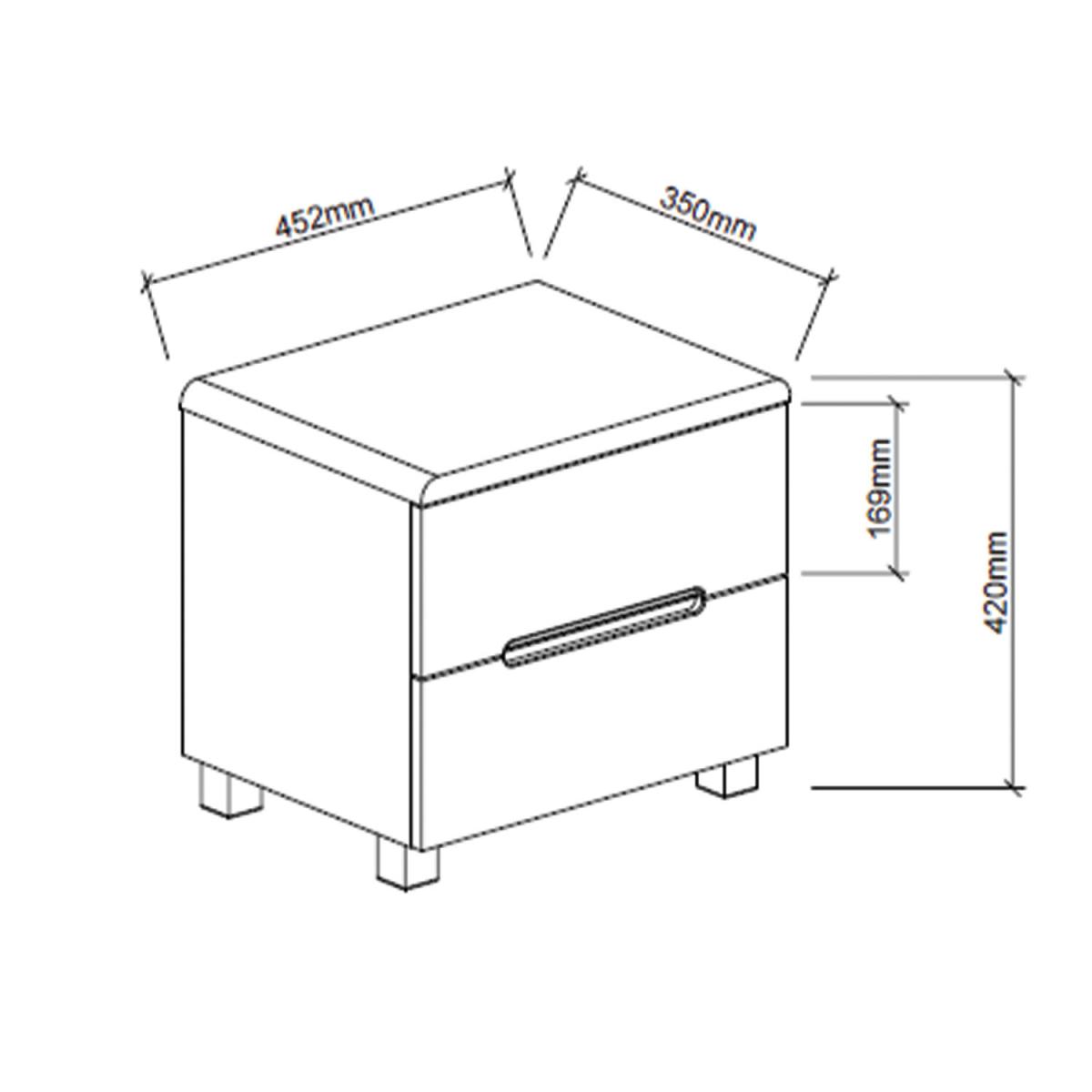 This wonderful Blanco Bedside Cabinet is a beautiful and modern piece of bedroom furniture, combining both style and practicality. Its easy grip, cut-out handles and smooth metal drawer runners give access to spacious drawers, perfect for storing clothes, bedding, cosmetics and more. With two drawers, the bedside will allow you to organise all your goods, keeping your bedroom neat and tidy. The flat top surface is ideal for displaying your lamp, photo frames or your favourite ornaments. The high gloss finish is sleek and completely on trend, and the cool colours with pearl silver feet will make any room seem brighter and more spacious.