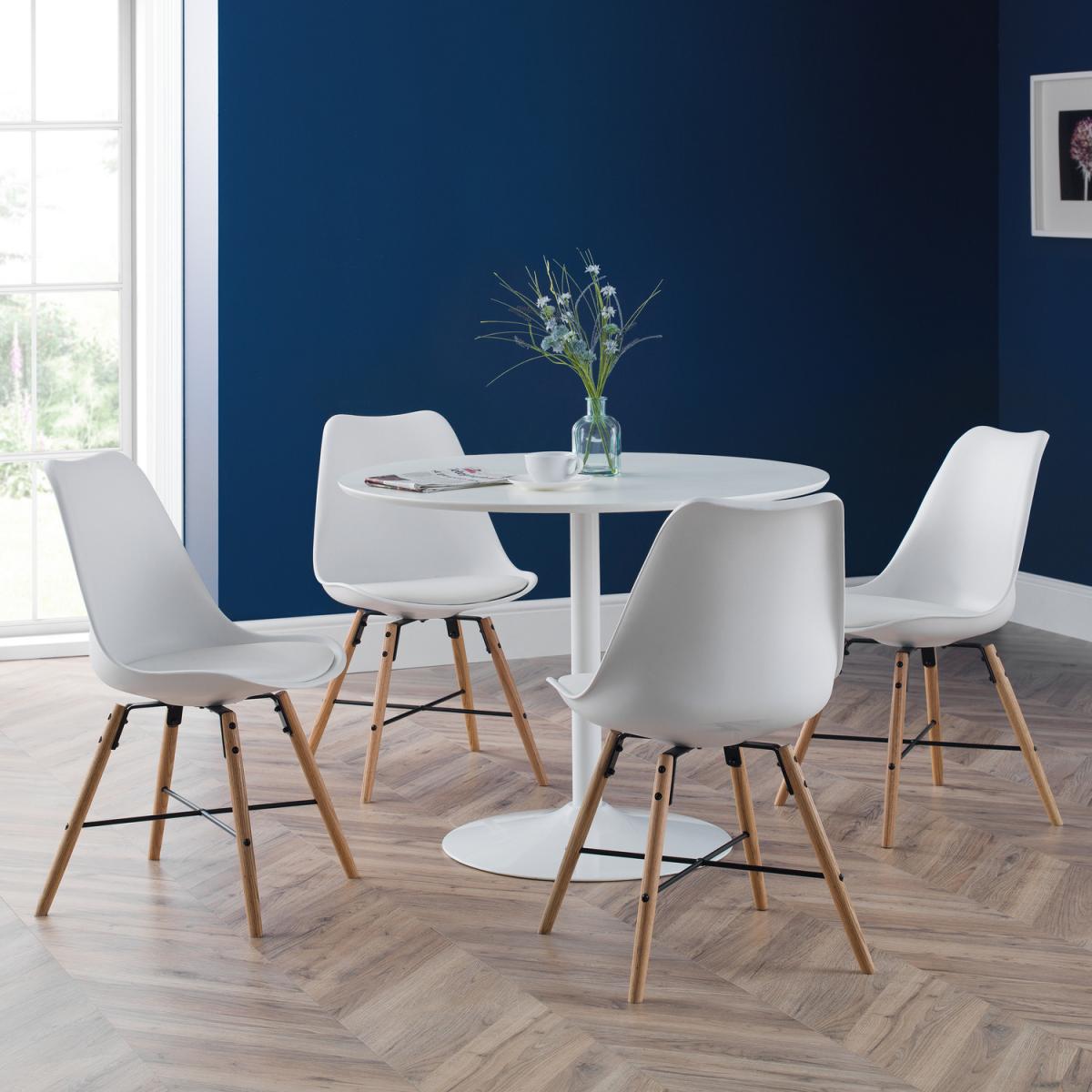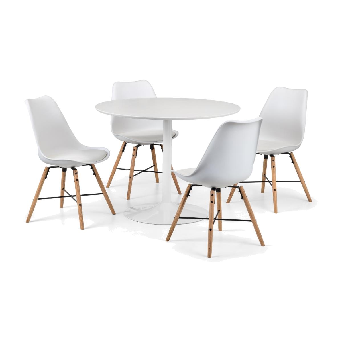 Blanco White Round Table and 4 Kari Chairs Set - White