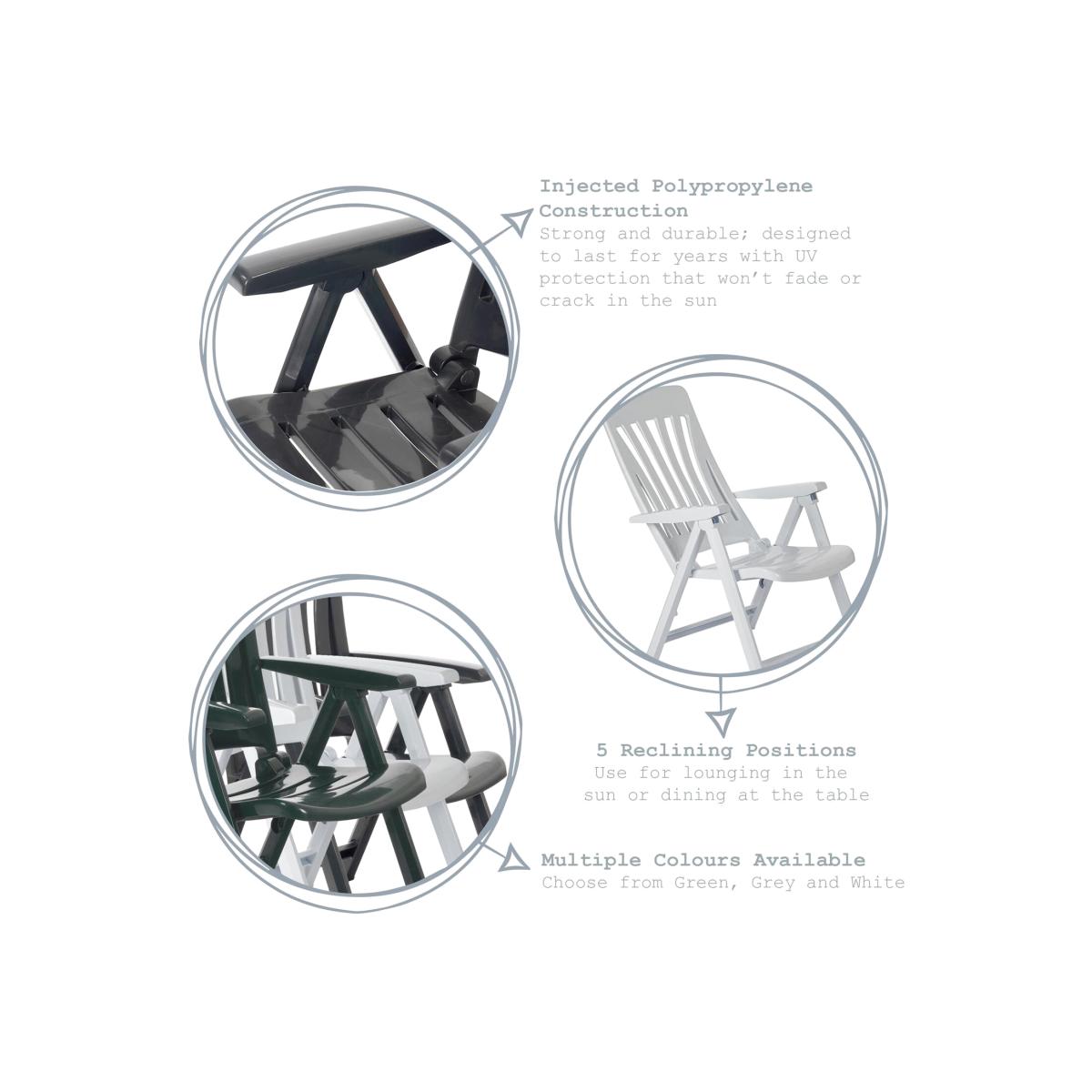 Bring a taste of the Costa Brava to your home garden this summer with the Blanes range of outdoor plastic armchairs from Spanish furniture specialists Resol. Designed and manufactured in Catalonia, these chairs have Mediterranean sunshine in their DNA - however, a tough injected polypropylene construction means they'll be every bit as suited to the rigours of the typical British Summertime as well. Five reclining positions ensure optimum comfort in any scenario, whether entertaining guests on the terrace or patio, or sunbathing on the grass. Modelled on the classic lawn chair style, these chairs fold flat for easy, space-saving storage when not in use. With added UV protection against fading and degradation, you can be sure that these chairs will be a focal part of your outdoor summer garden decor for years to come.