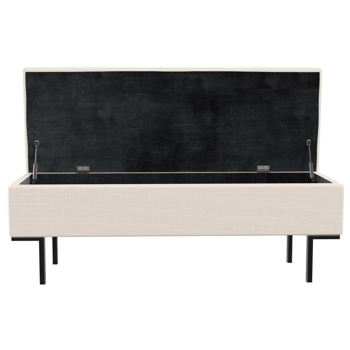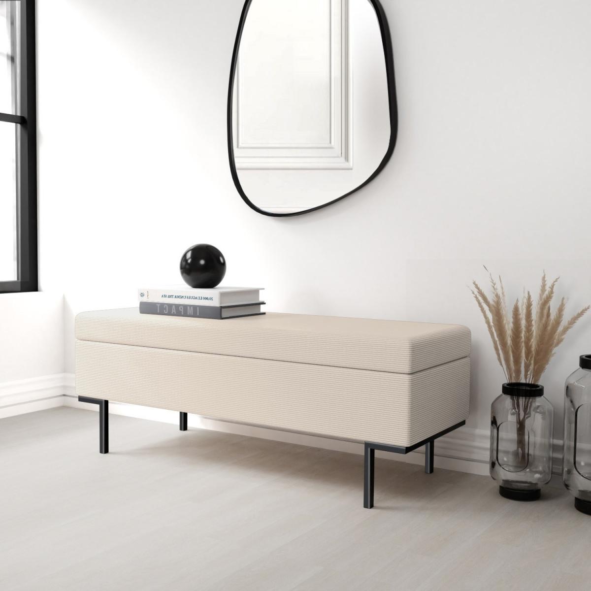 I love this beige corduroy blanket box seat for its combination of practicality and subtle style. It works particularly well in modern or minimalist interiors due to its clean lines and understated colour, but the texture of the corduroy also adds a cosy touch that can soften a more industrial space. It’s versatile enough to serve as extra seating, storage, or even a visual anchor in a hallway or bedroom. For styling tips, try layering it with textured cushions or placing it near a bench with throws to create a welcoming and functional corner. It’s an excellent choice for adding both storage and a touch of tactile softness to your space.