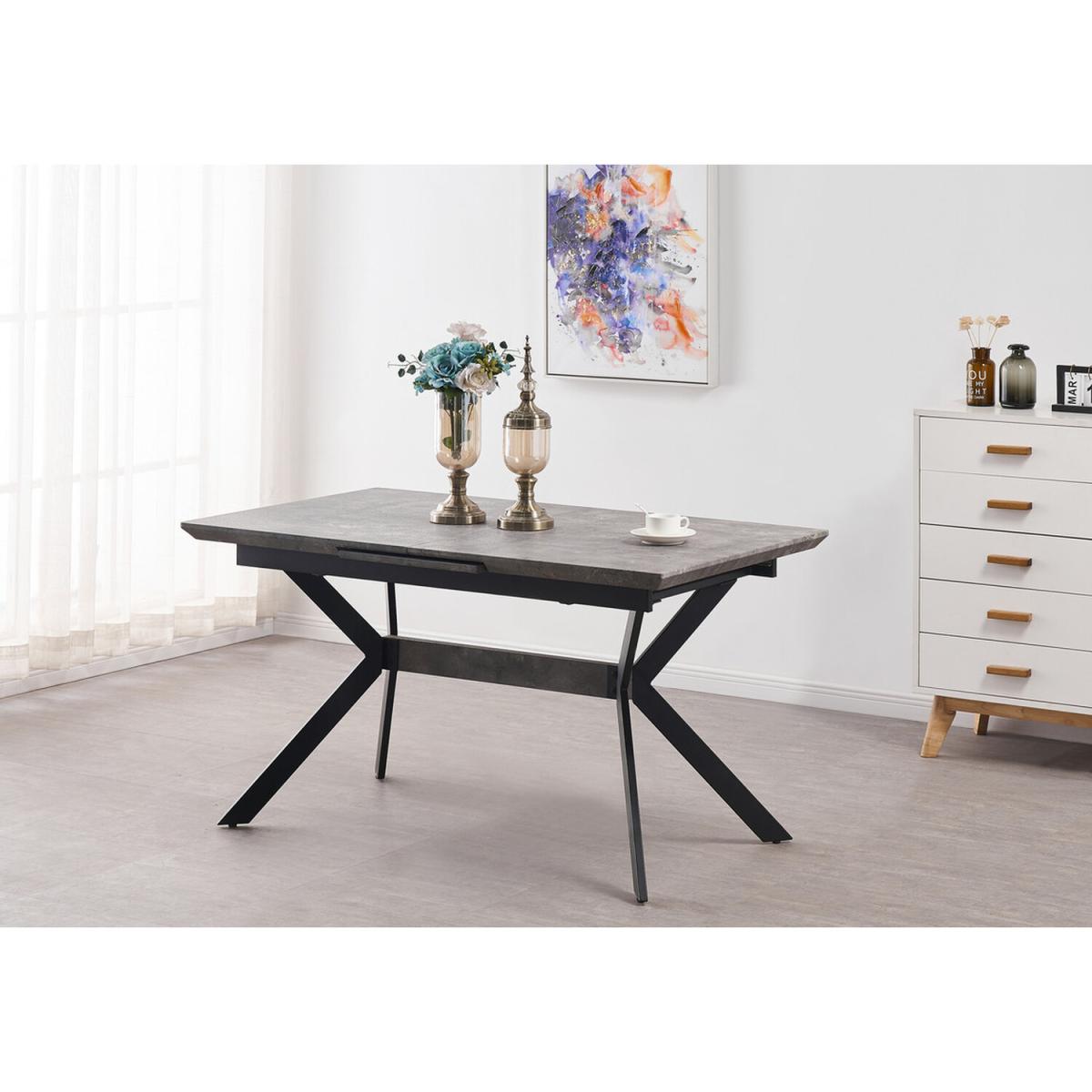 The sleek design of this Blaze Rectangle Dining Table nods to the evergreen aesthetic and functionality of iconic mid-century modern furniture. Simply pull the table ends apart and an extra leaf pops into place allowing you to seat six with ease. A perfect table for everyday family mealtimes, as well as an excellent table for grownup dinner gatherings. The base is the sculptural cross-shaped design of legs in black powder-coated MDF. The chic and innovative table to pass the test of time and help you live better. The unique designs make the table blend perfectly with your home environment whether it's from your kitchen to your dining room, or from your bedroom to your living room.