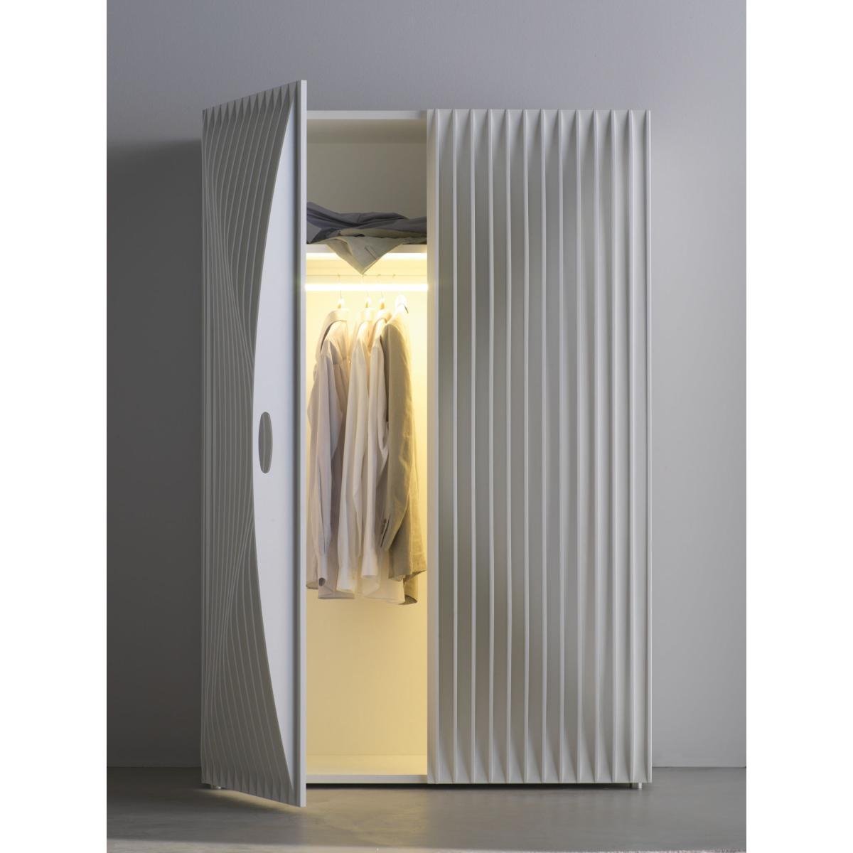 The collaboration between Horm and Karim Rashid provides new cupboards of great aesthetic quality and innovation. A new challenge for Horm on a new and successful project. The kinetic effect on the front is available in several lacquered colours. Blend can be supplied with one or two doors. Depth 60 or 72 cm with shelf and clothes hanging rail or just shelves to answer every demand. Necessary operations: the one door product is delivered already assembled. The 2 door version requires assembly of the front. Feet or base have to be fixed and regulated.